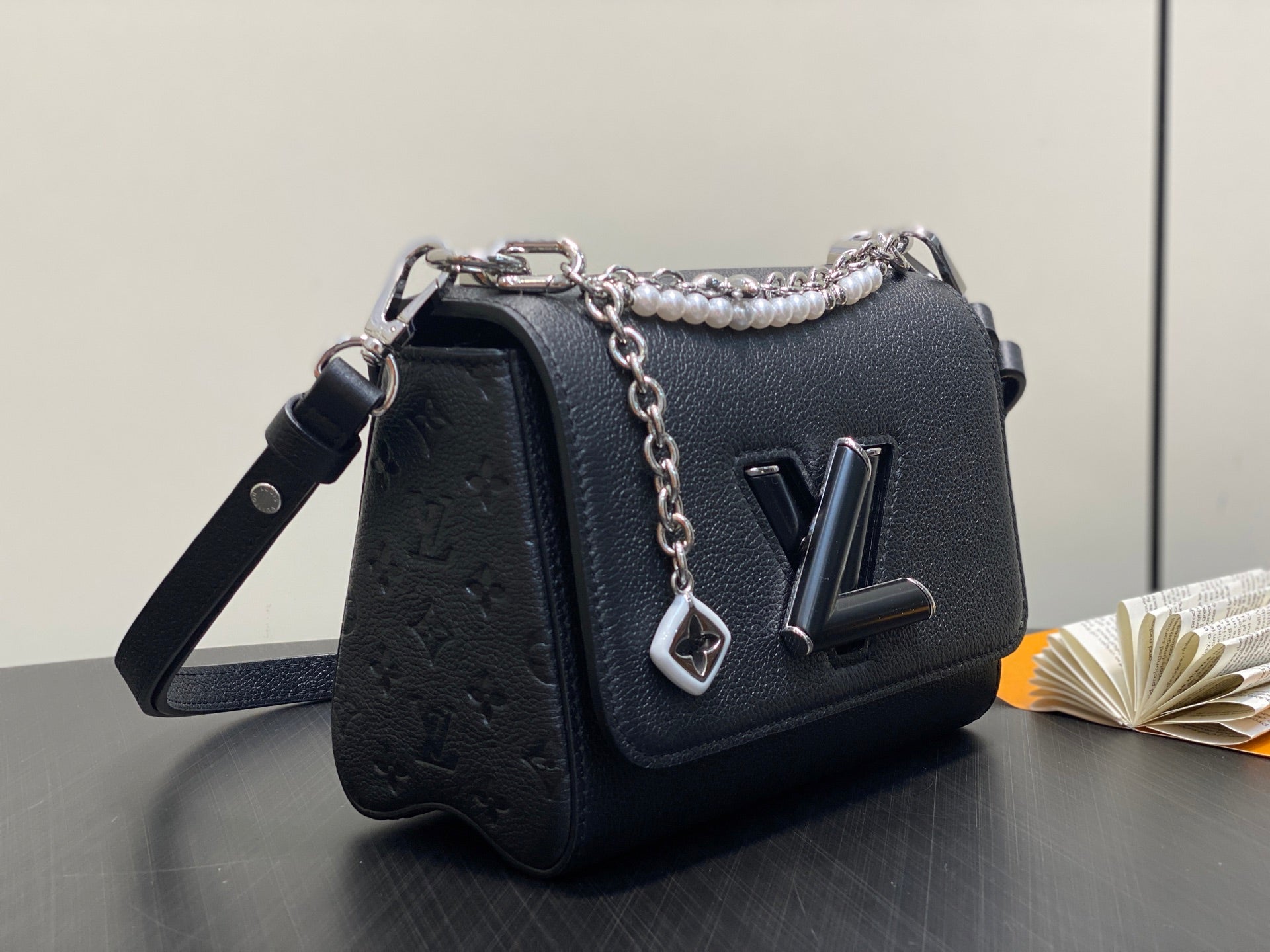 Twist MM Slim 23cm Black Calfskin