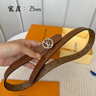 LV CIRCLE 25MM REVERSIBLE BELT MEDIUM BROWN MONOGRAM CALFSKIN SILVER HARDWARE