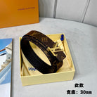 LV INITIALES 30 MM REVERSIBLE BELT IN BROWN MONOGRAM AND BLACK CALFSKIN GOLD HARDWARE