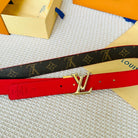 LV Initiales 30mm Reversible Belt Gold Rotating Buckle Red Brown Leather