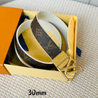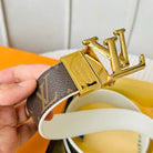 LV Initiales 30mm Reversible Belt Gold Rotating Buckle White Brown Leather