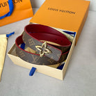 LV MINI FLOWERGRAM 30MM REVERSIBLE BELT IN BLOOD RED CALFSKIN GOLD HARDWARE