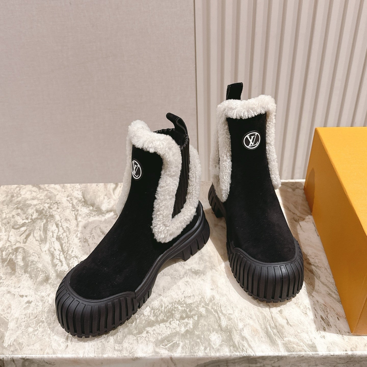 LV Aspen Platform Ankle Boot Black Suede Cowhide/Shearling 450430