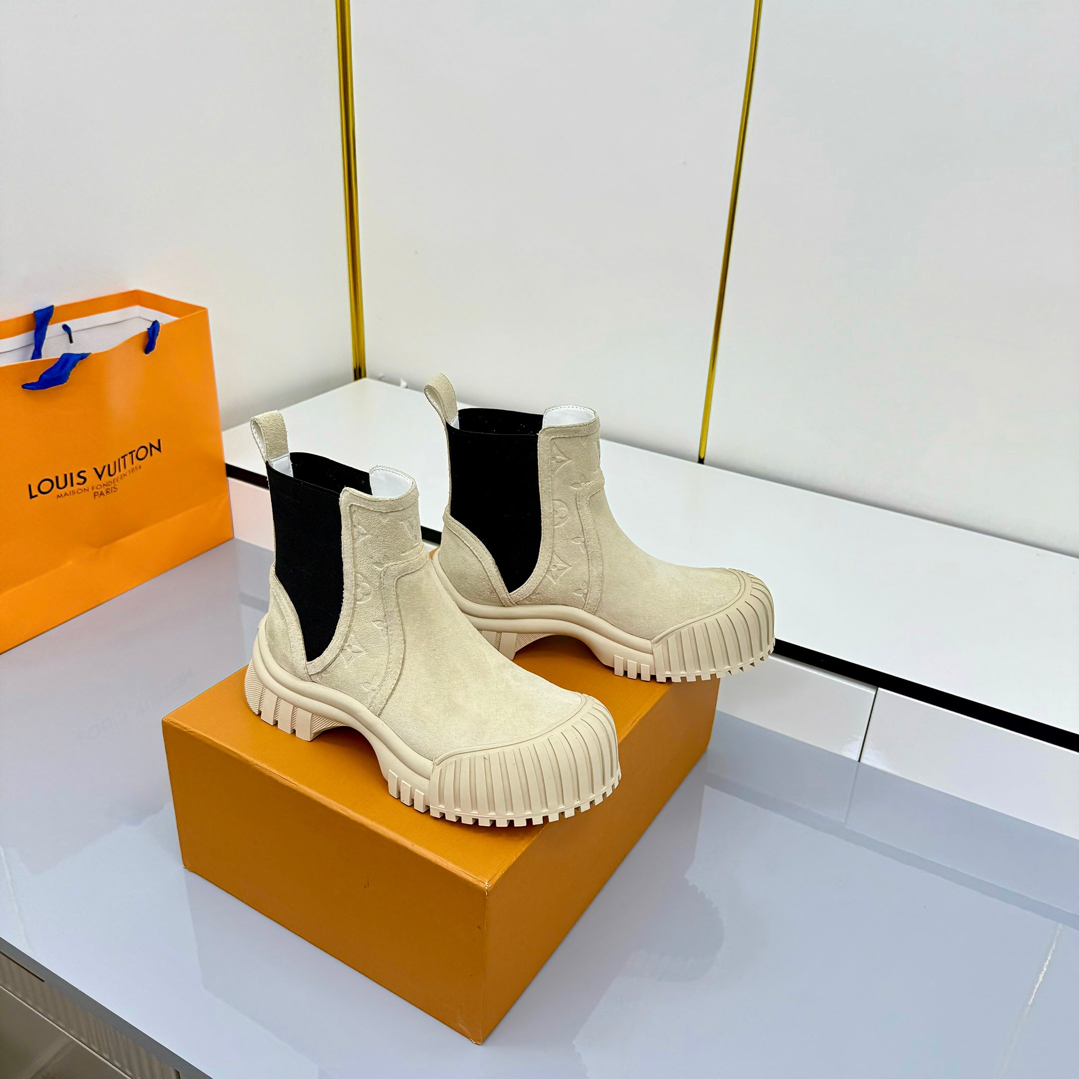 LV 25 Ryby Boot 80mm Beige Black Suede 510019