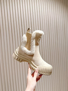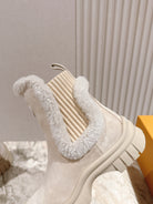 LV Ruby Flat Ankle Boot 50mm Beige Suede & Fur 450347