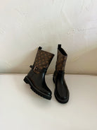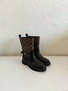 TERRITORY FLAT ANKLE BOOT IN BLACK MIX CHOCOLATE BROWN MONOGRAM CALFSKIN