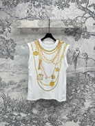 LV 25 Chain Round Neck Sleeveless T-shirt White Cotton