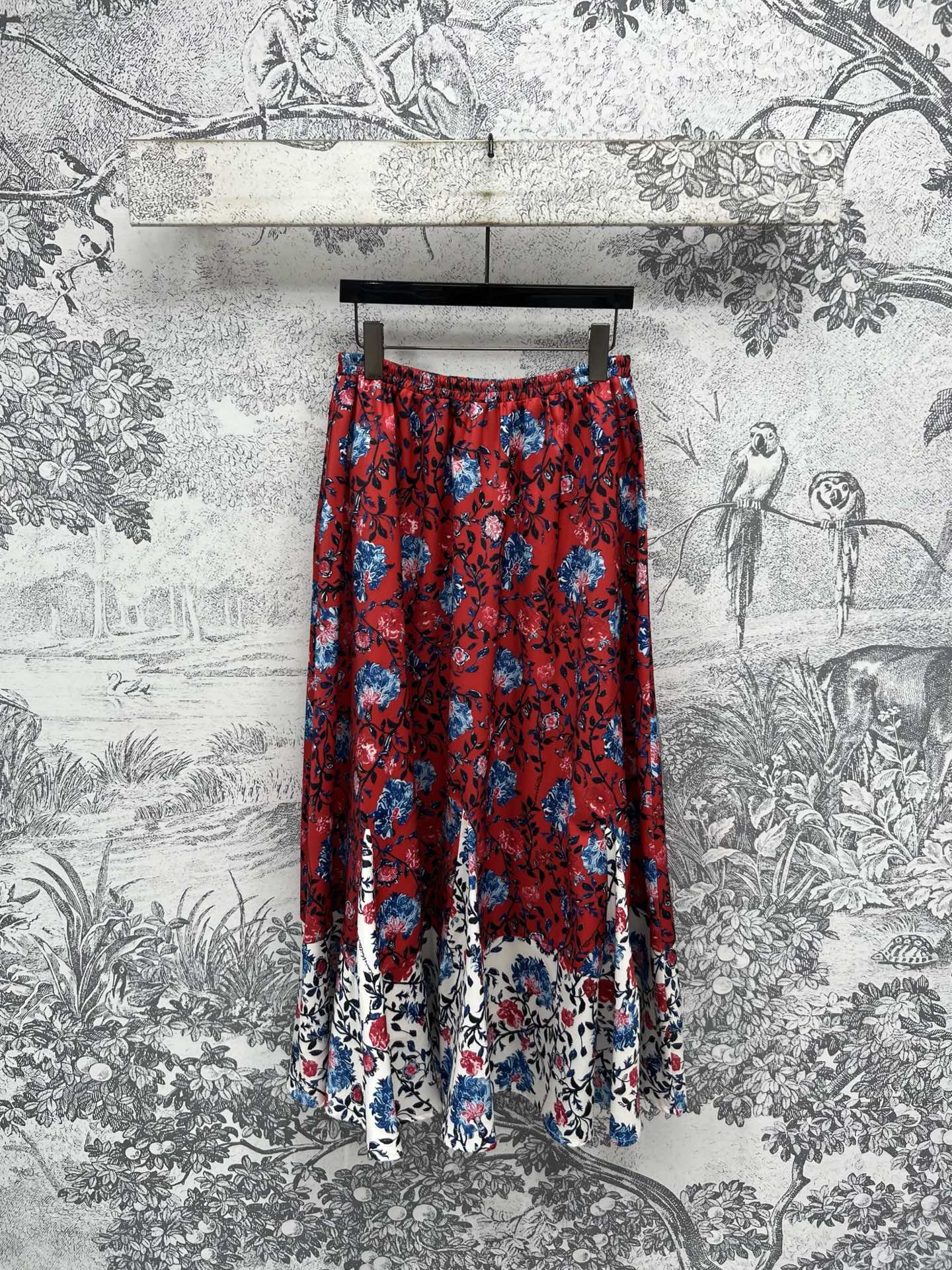 LV 25 Elastic Waist Old Flower Leather Skirt Red Poliester