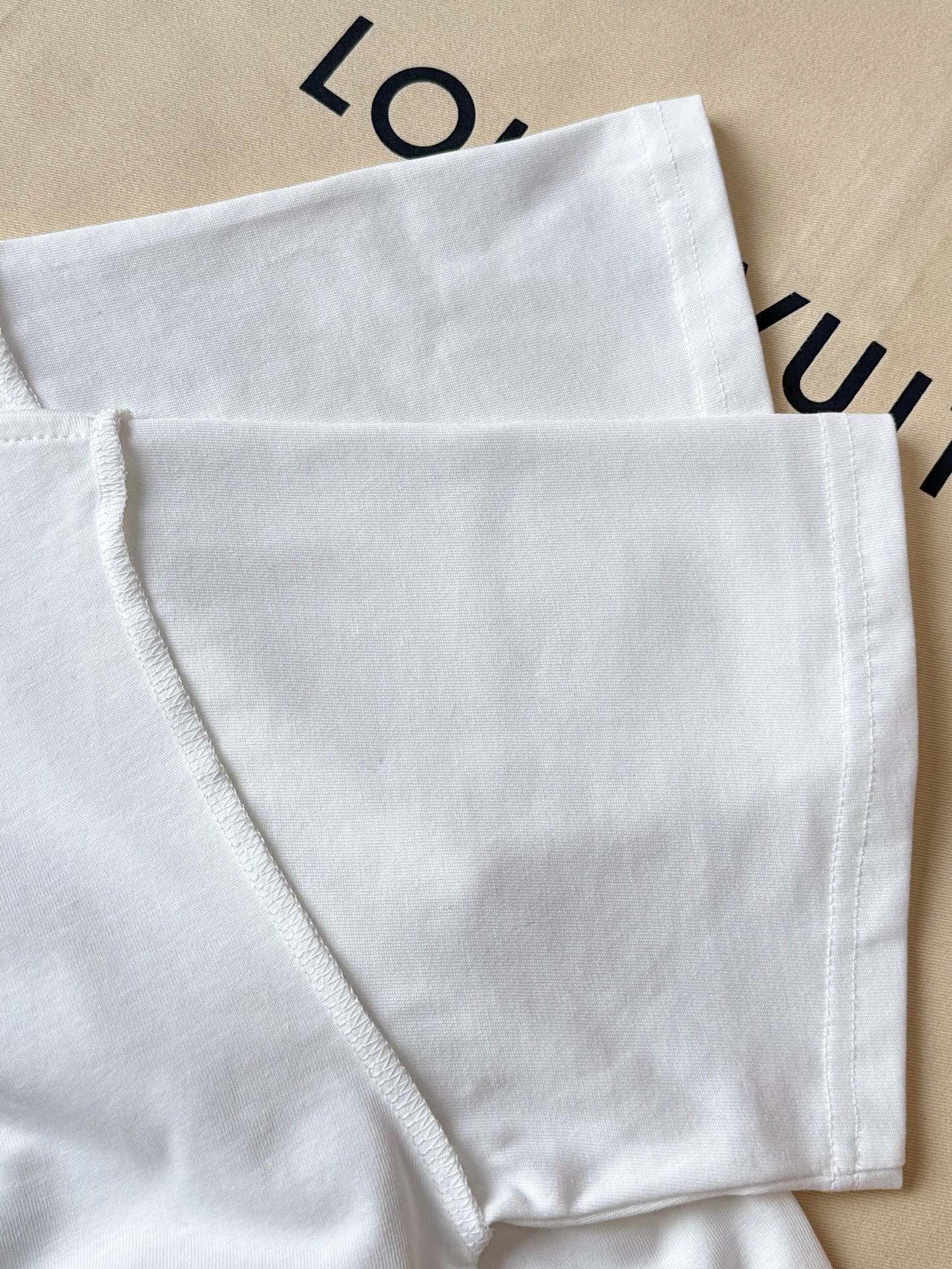 LV 25 Rainbow Smiley Face Print Short Sleeves Shirt White Cotton