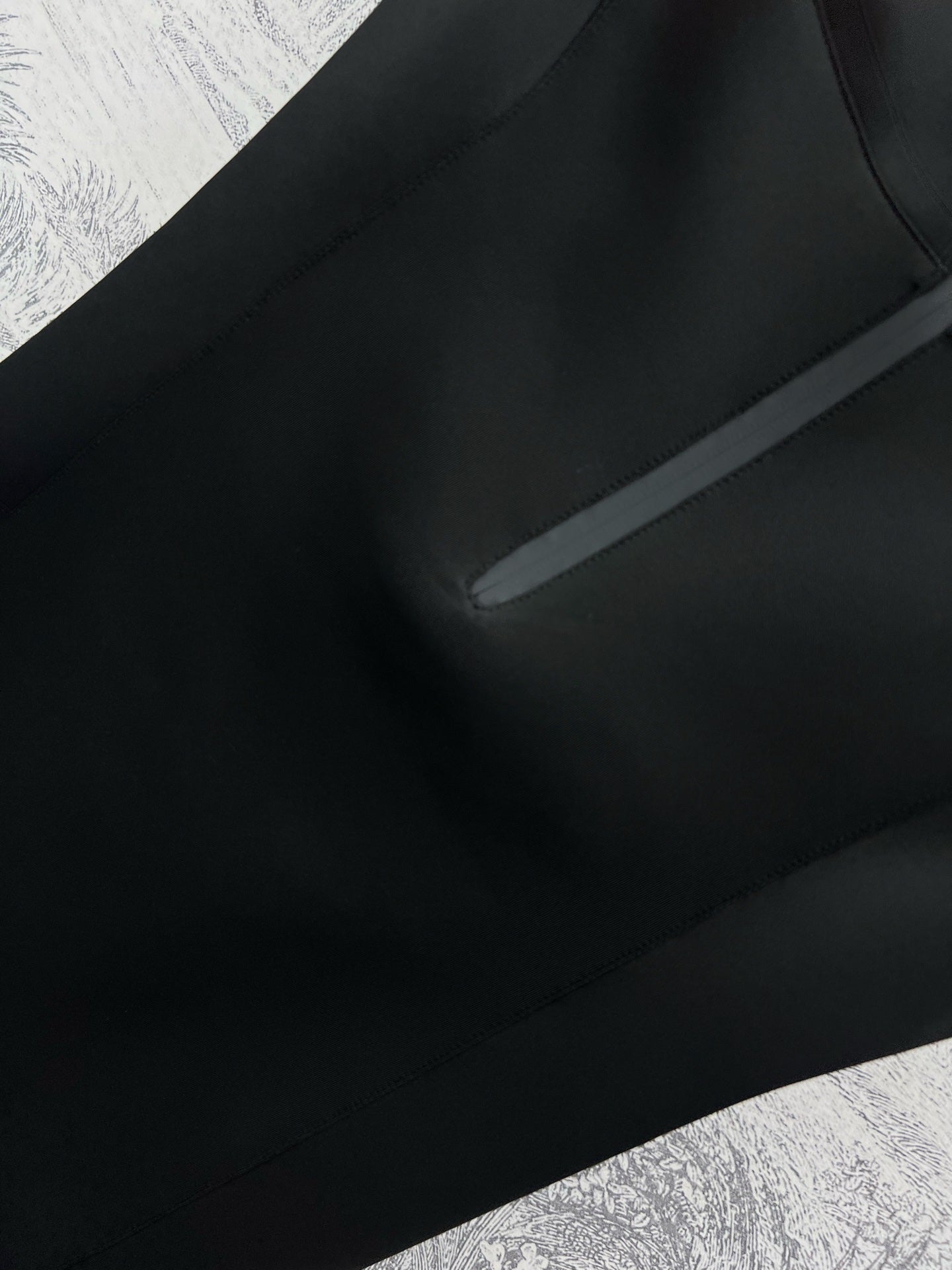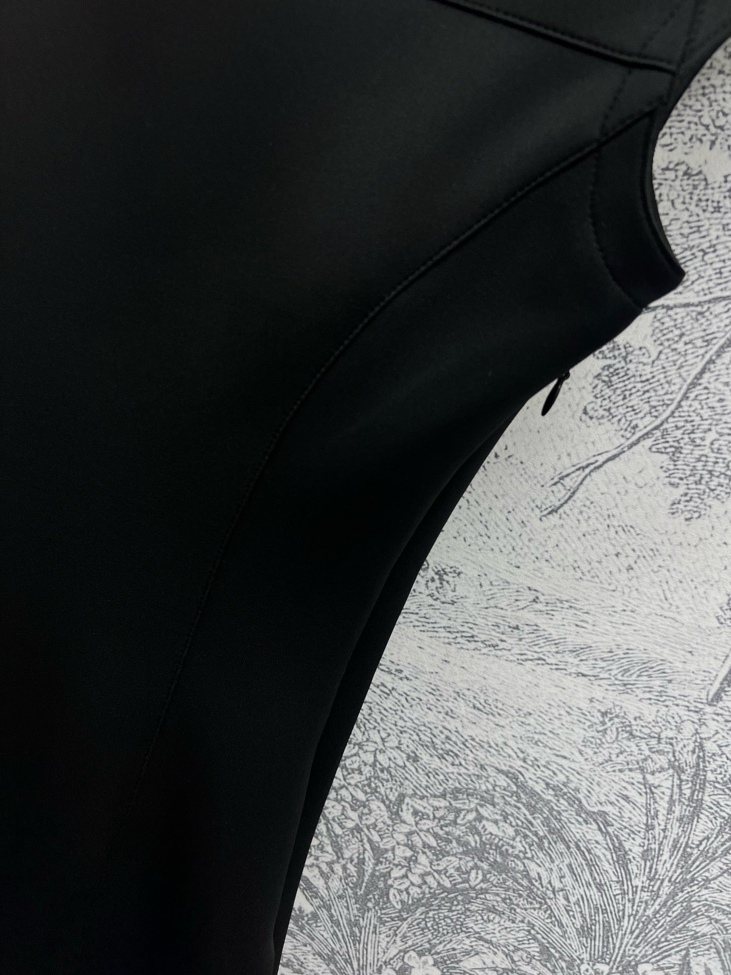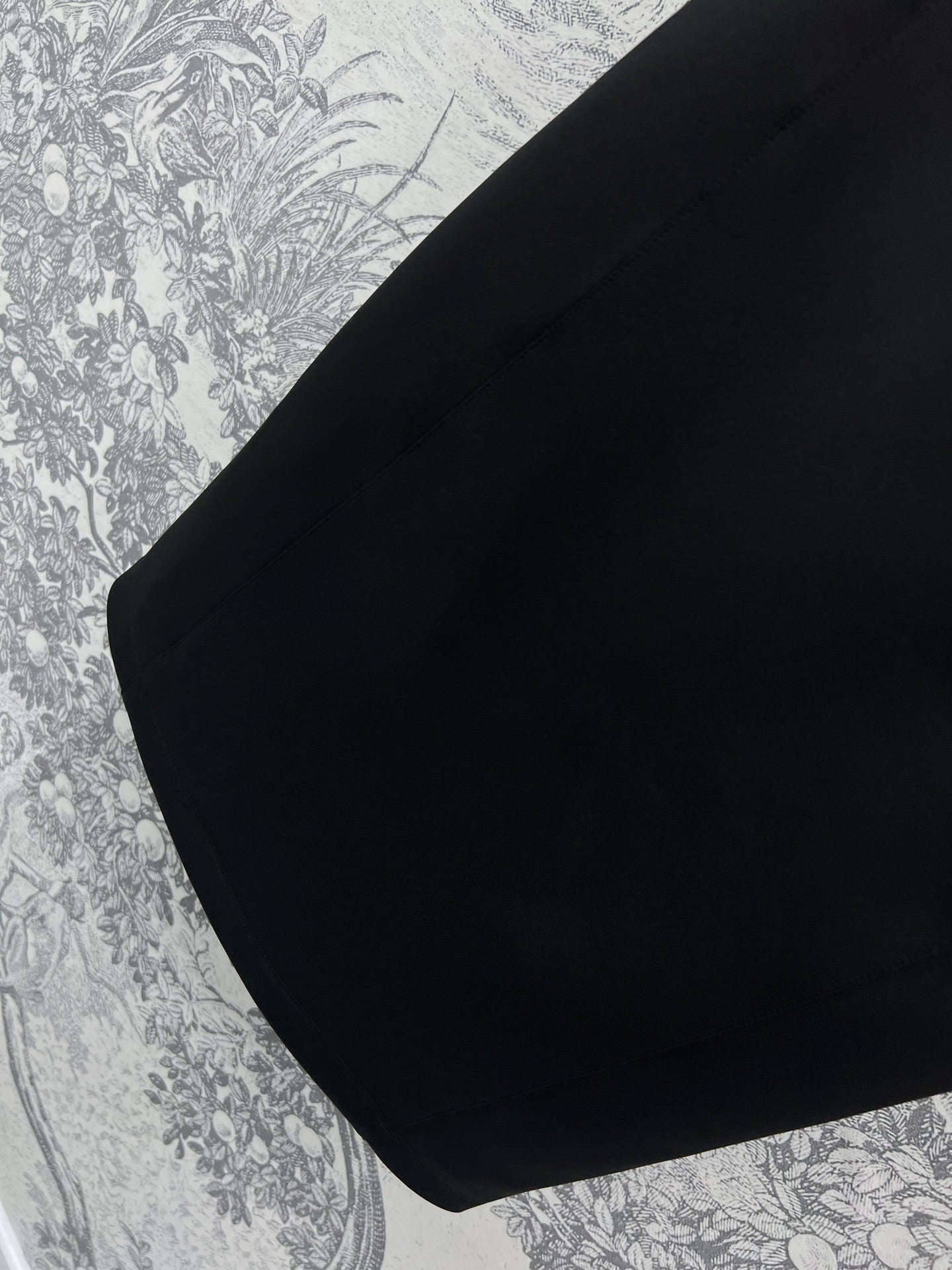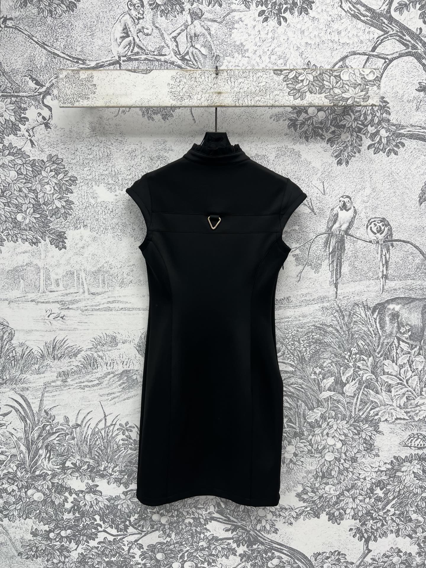 LV 25 Stand-Up Collar Ruffled Edges Dress Black Polyester