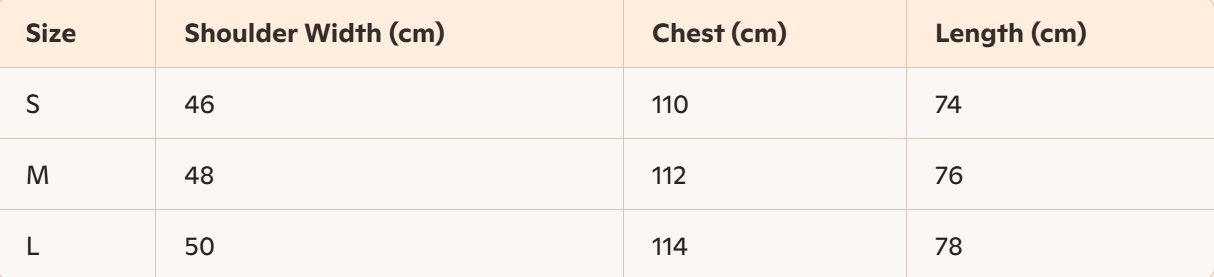 - For more information, please see the size guide below