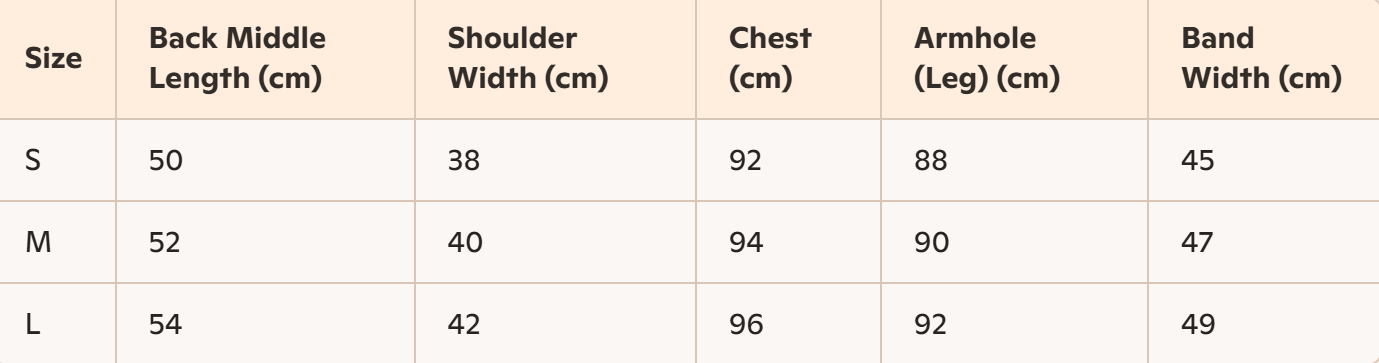 - Size: S, M, L