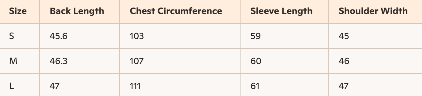 - Size: S, M, L