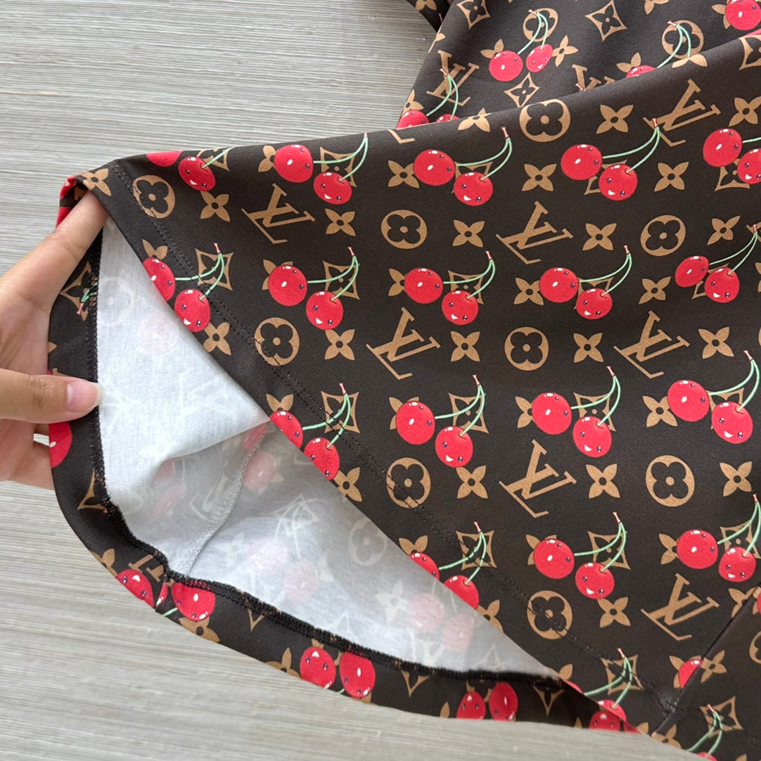 LV Classic Monogram Print Cherry Brown Red Cotton