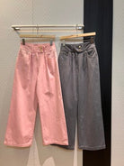 LV Flower Denim Wide Leg Pants Pink Grey