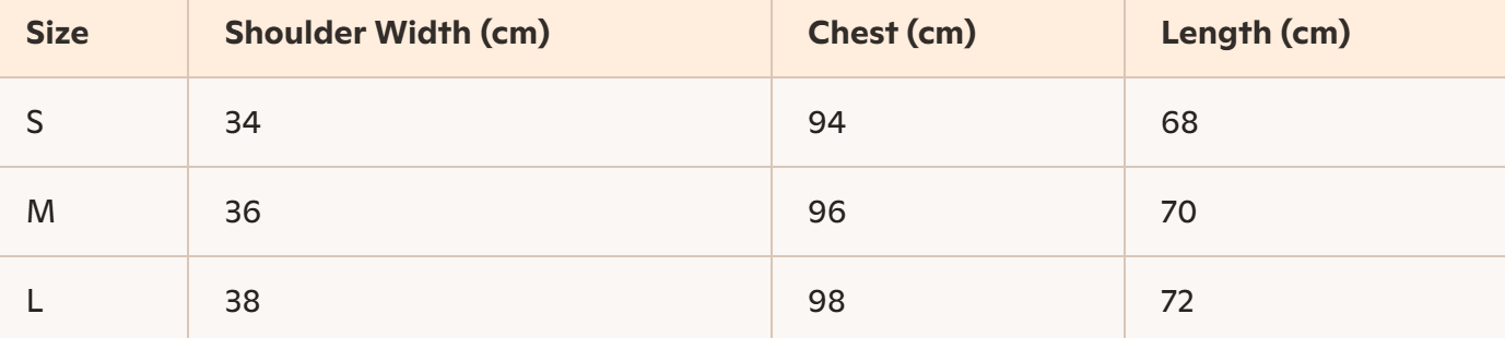 - Size: S, M, L