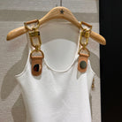 LV Metal Buckle Decorated Camisole Shirt White Cotton