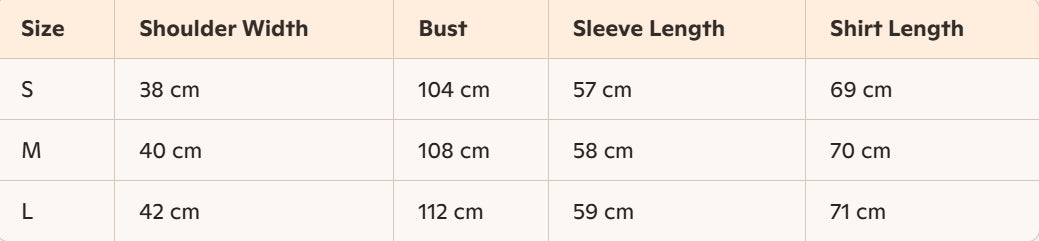 - Size : S, M, L