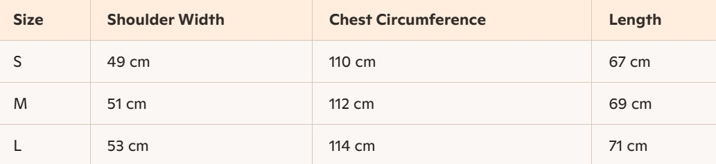 - For more information, please see the size guide below