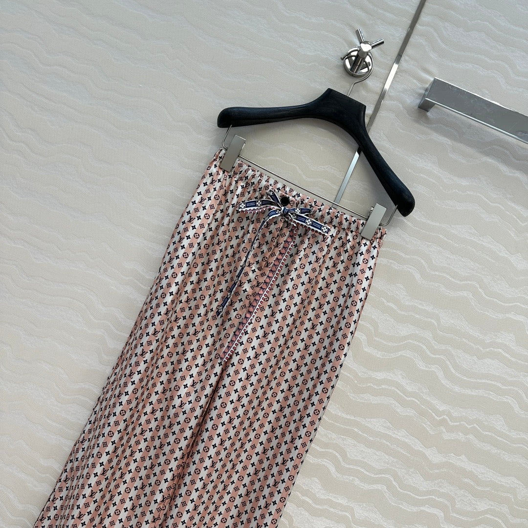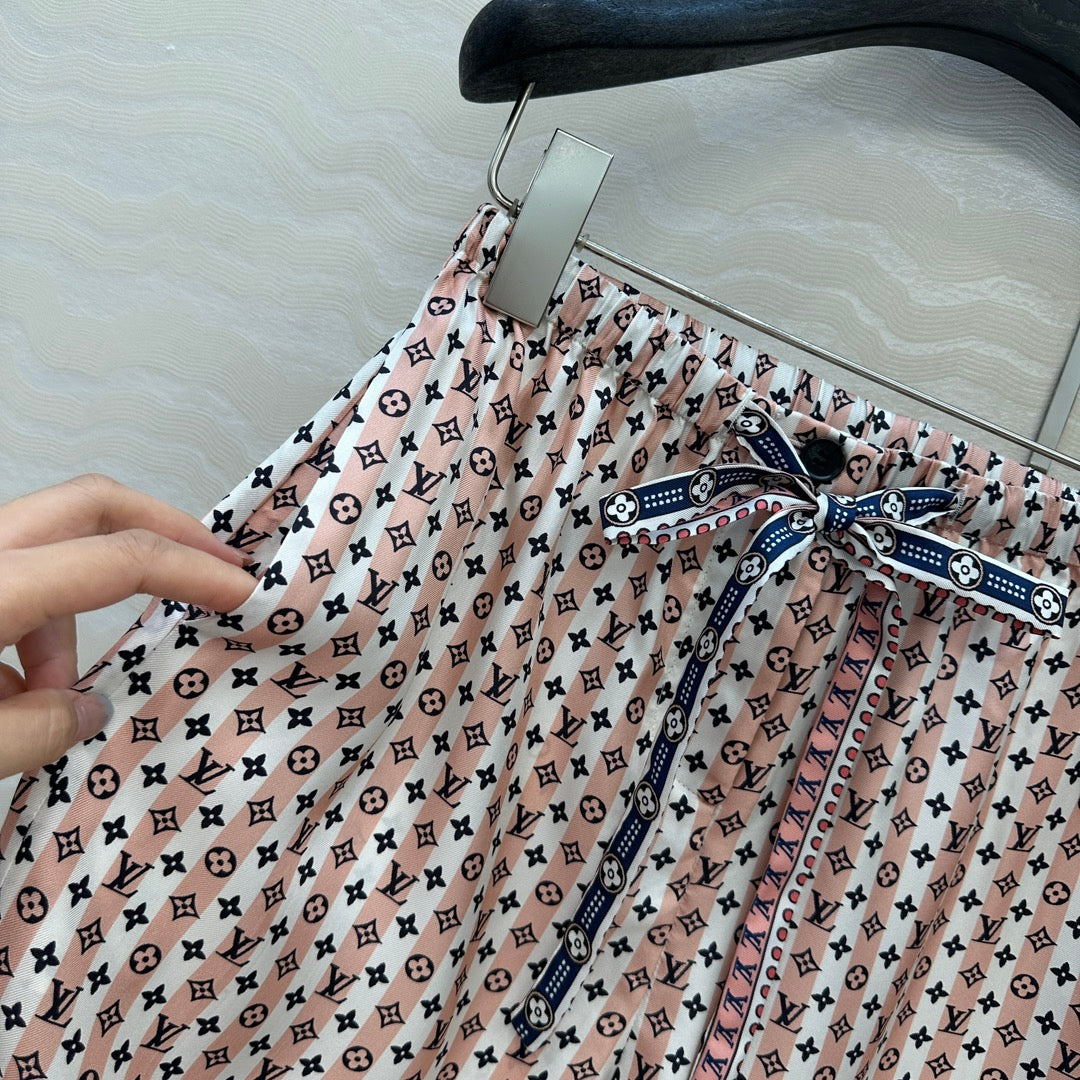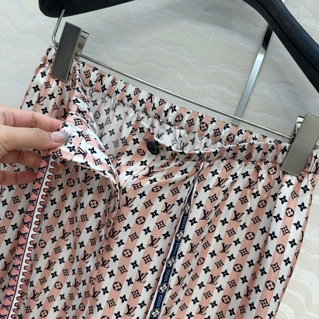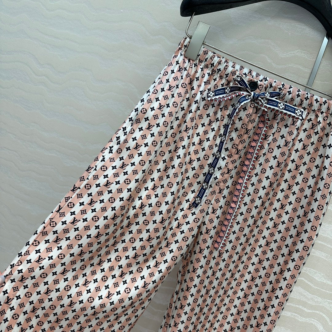LV 25 Monogram Pocket Patch Iron Elastic Waist Set Light Pink Cotton