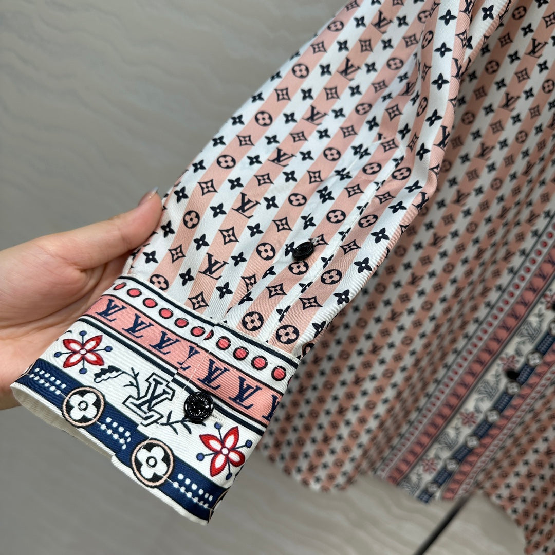 LV Monogram Floral Print Island Resort Shirt Multicolor Silk