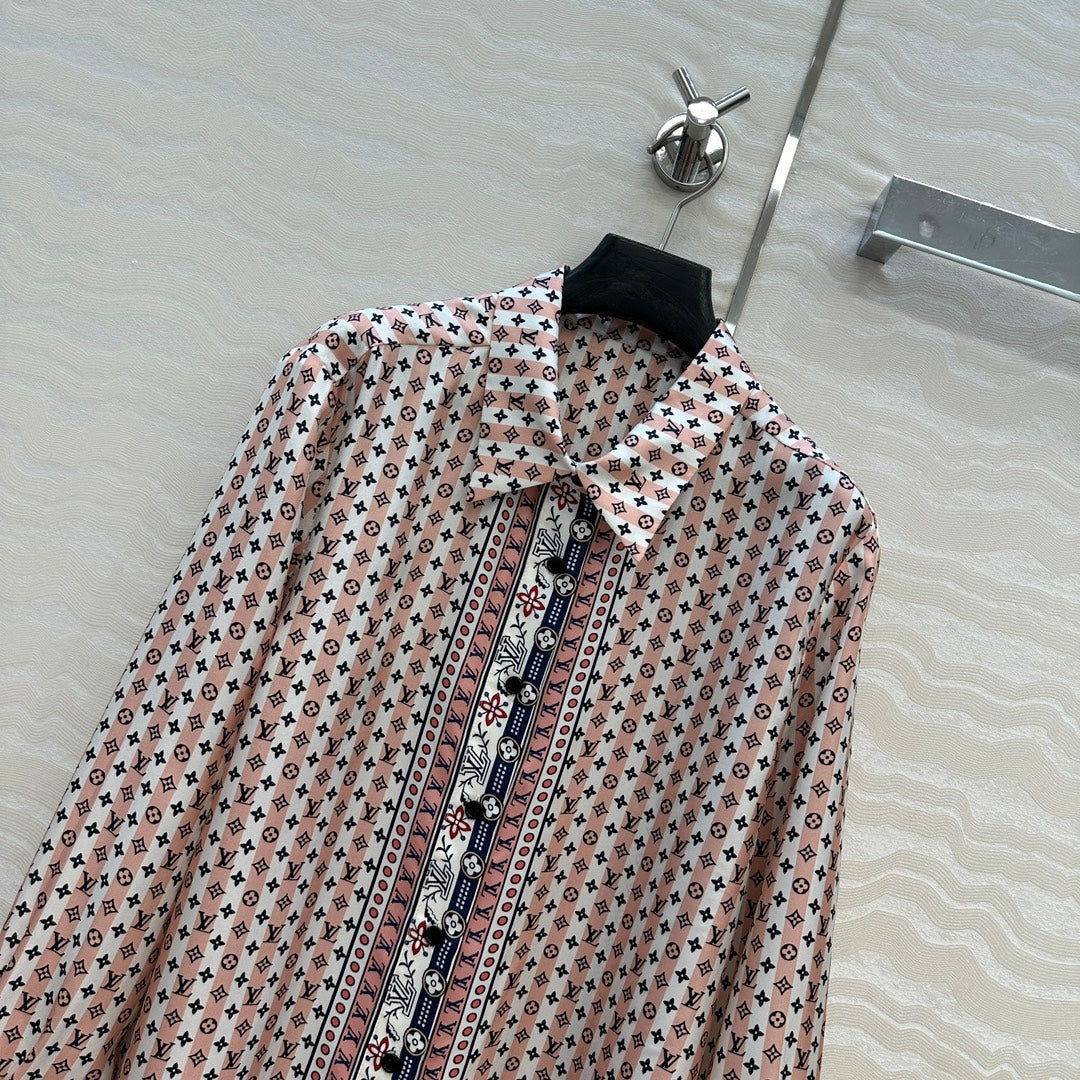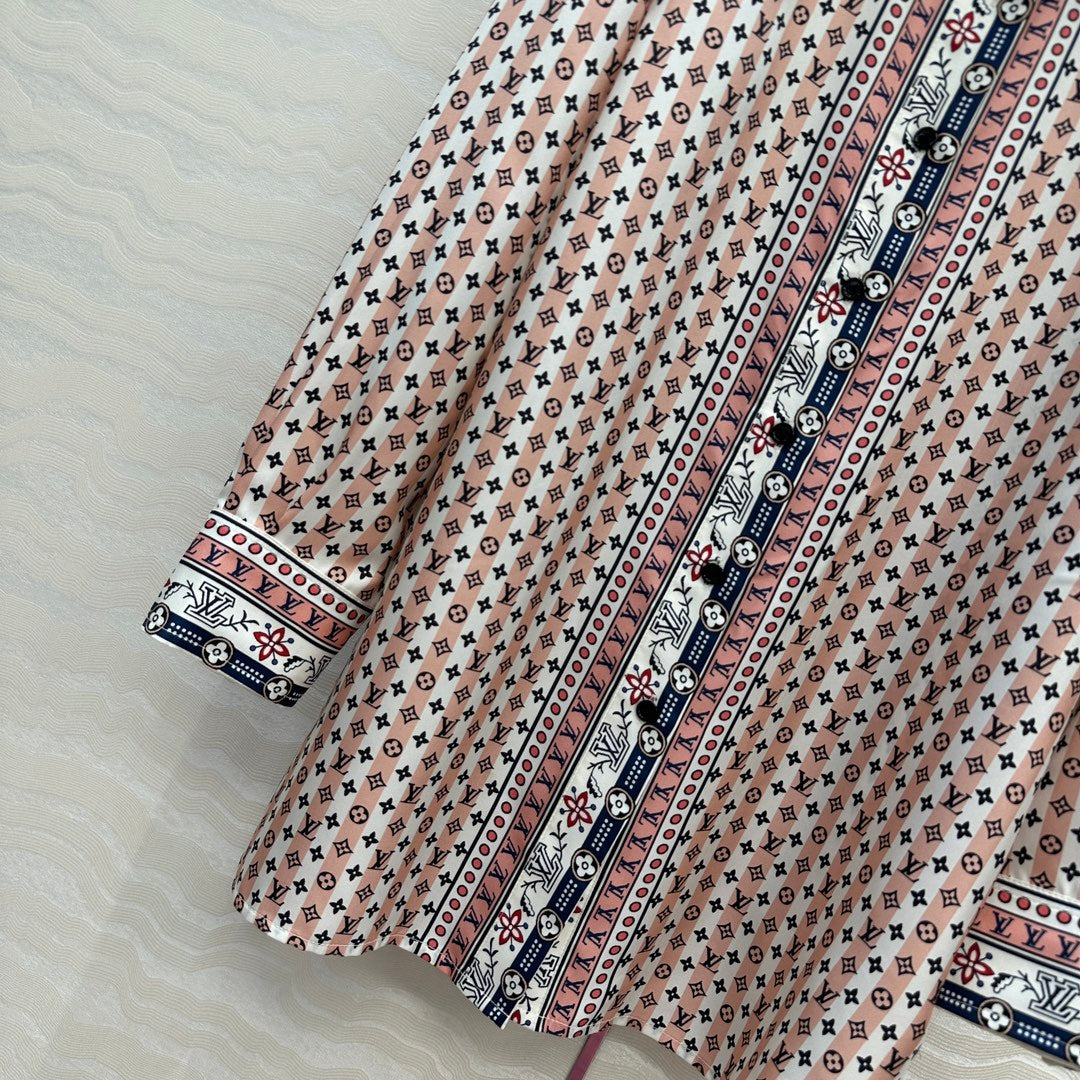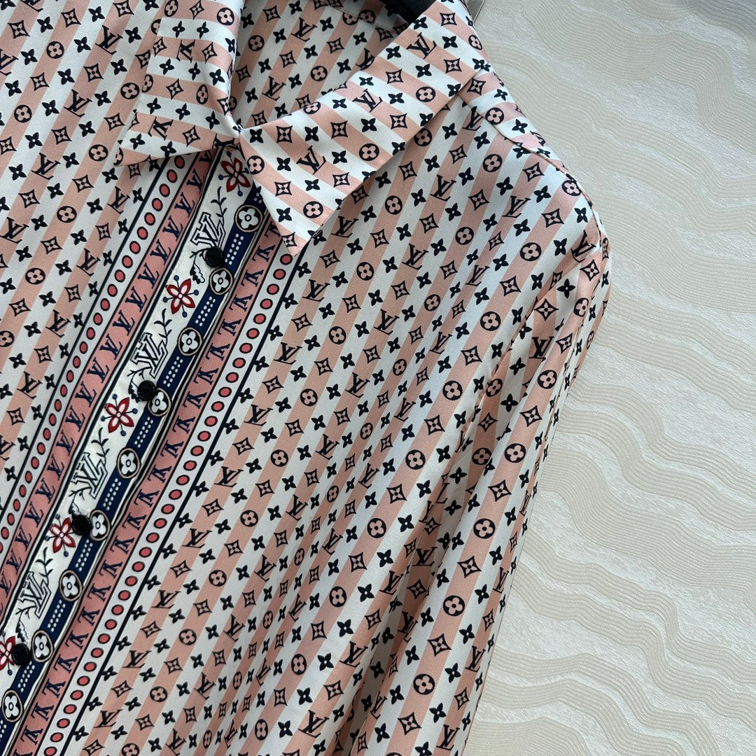 LV 25 Slightly Transparent Flower Shirt Brown Polyester