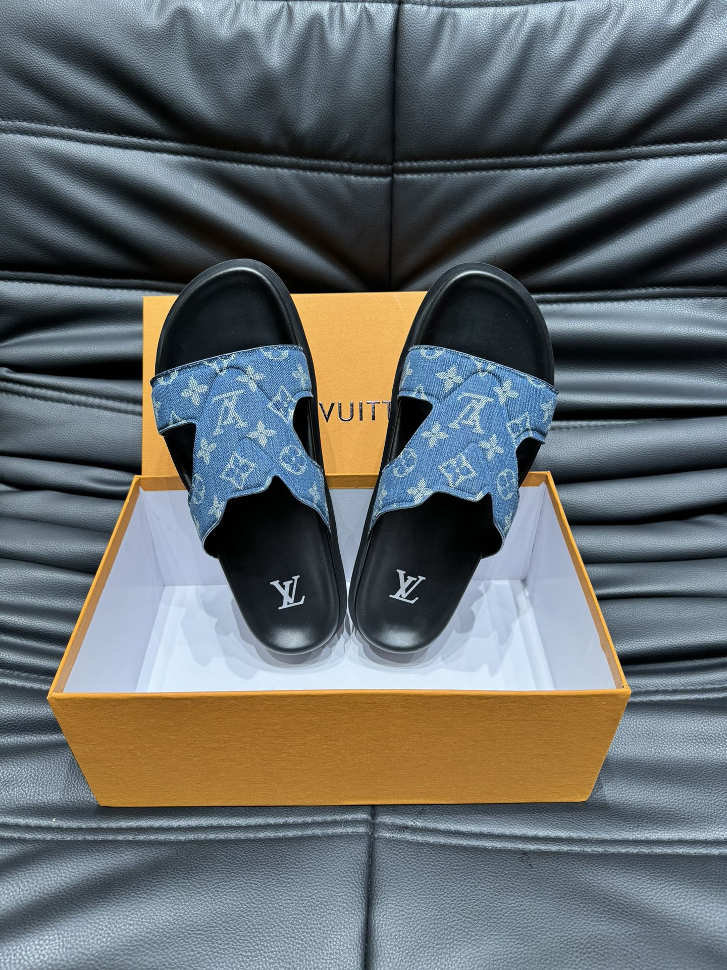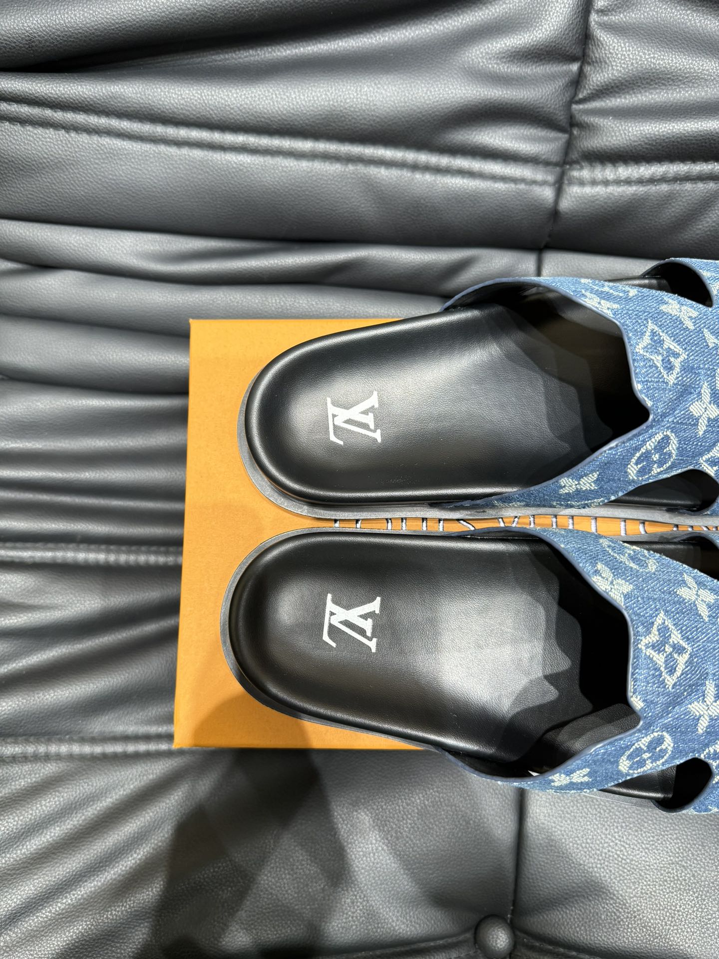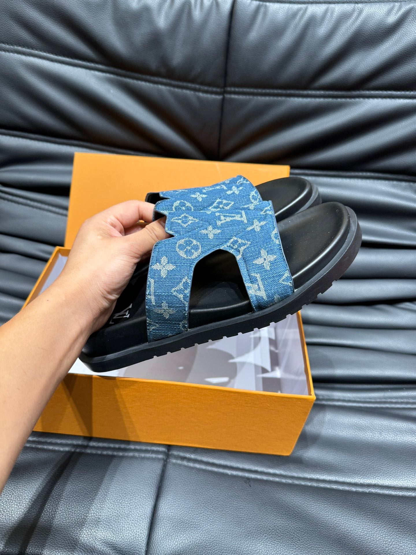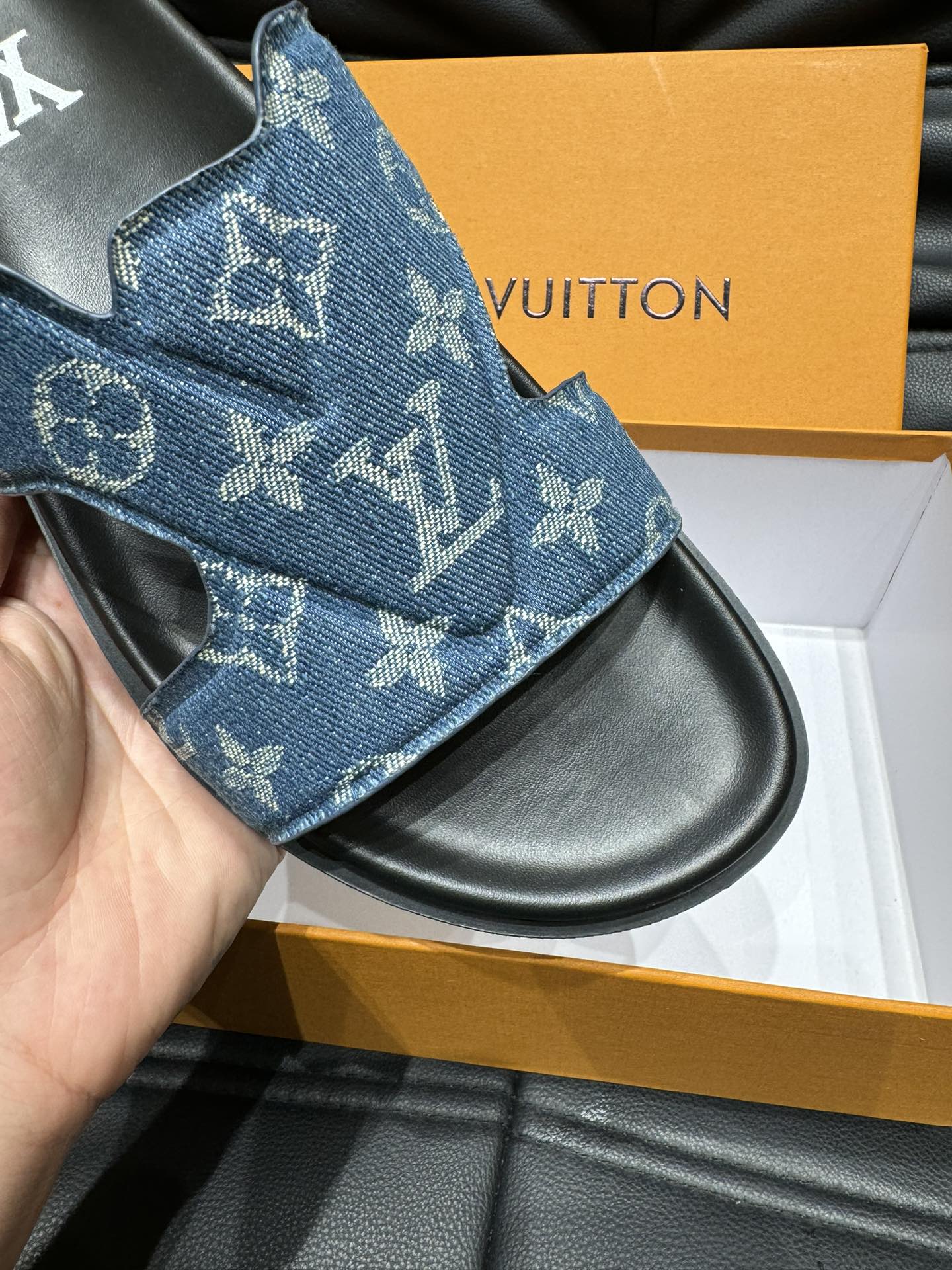 LV OASIS MULE IN BLUE DENIM MONOGRAM JACQUARD