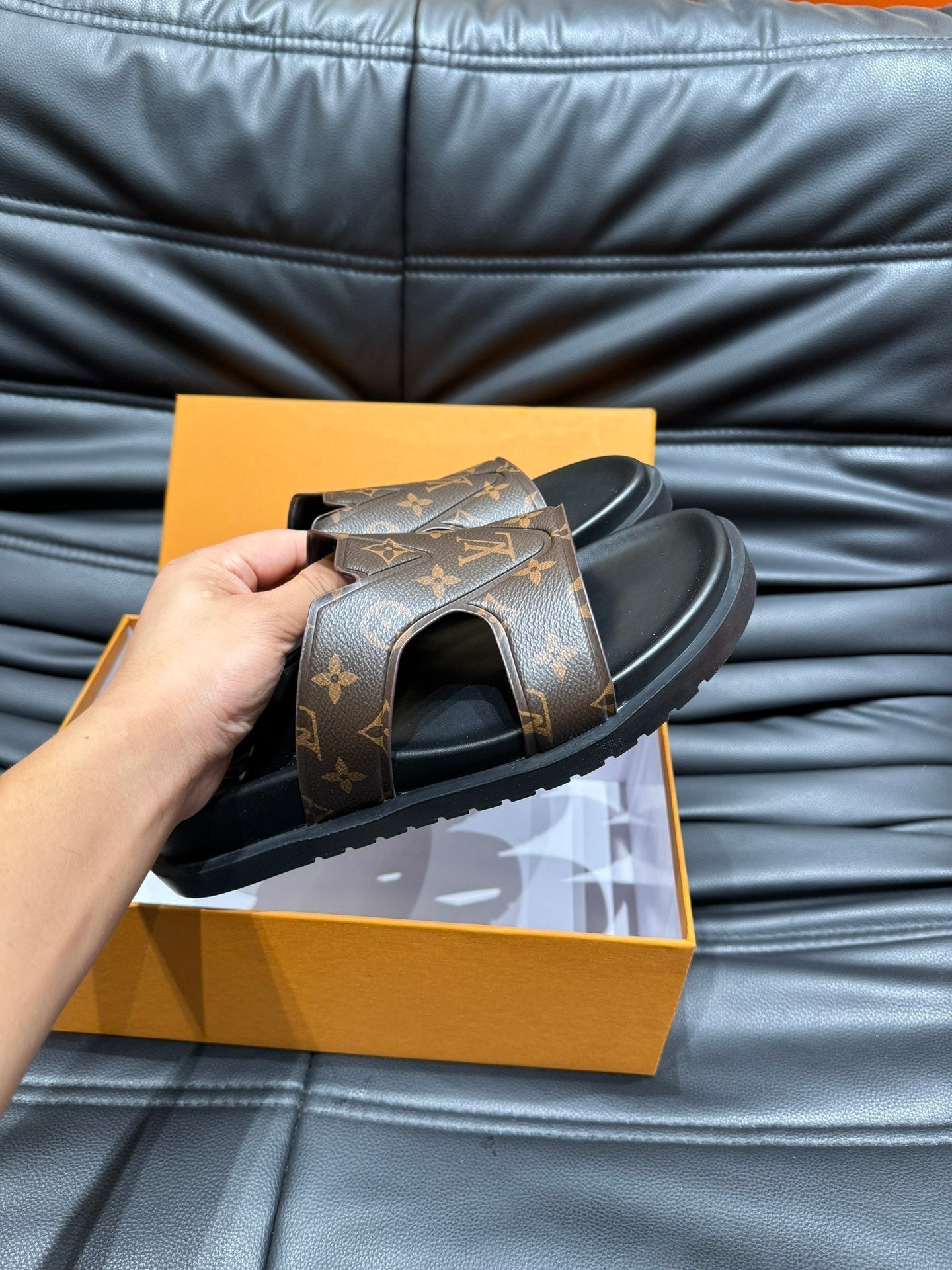 LV OASIS MULE IN CHOCOLATE BROWN MONOGRAM CALFSKIN