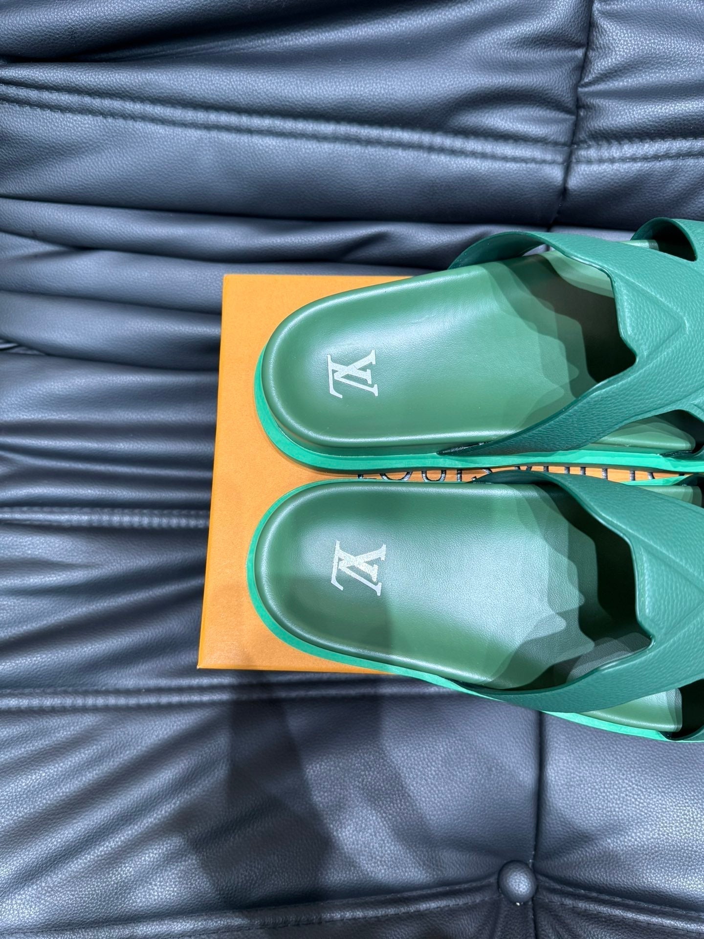LV OASIS MULE IN SEA GREEN CALFSKIN