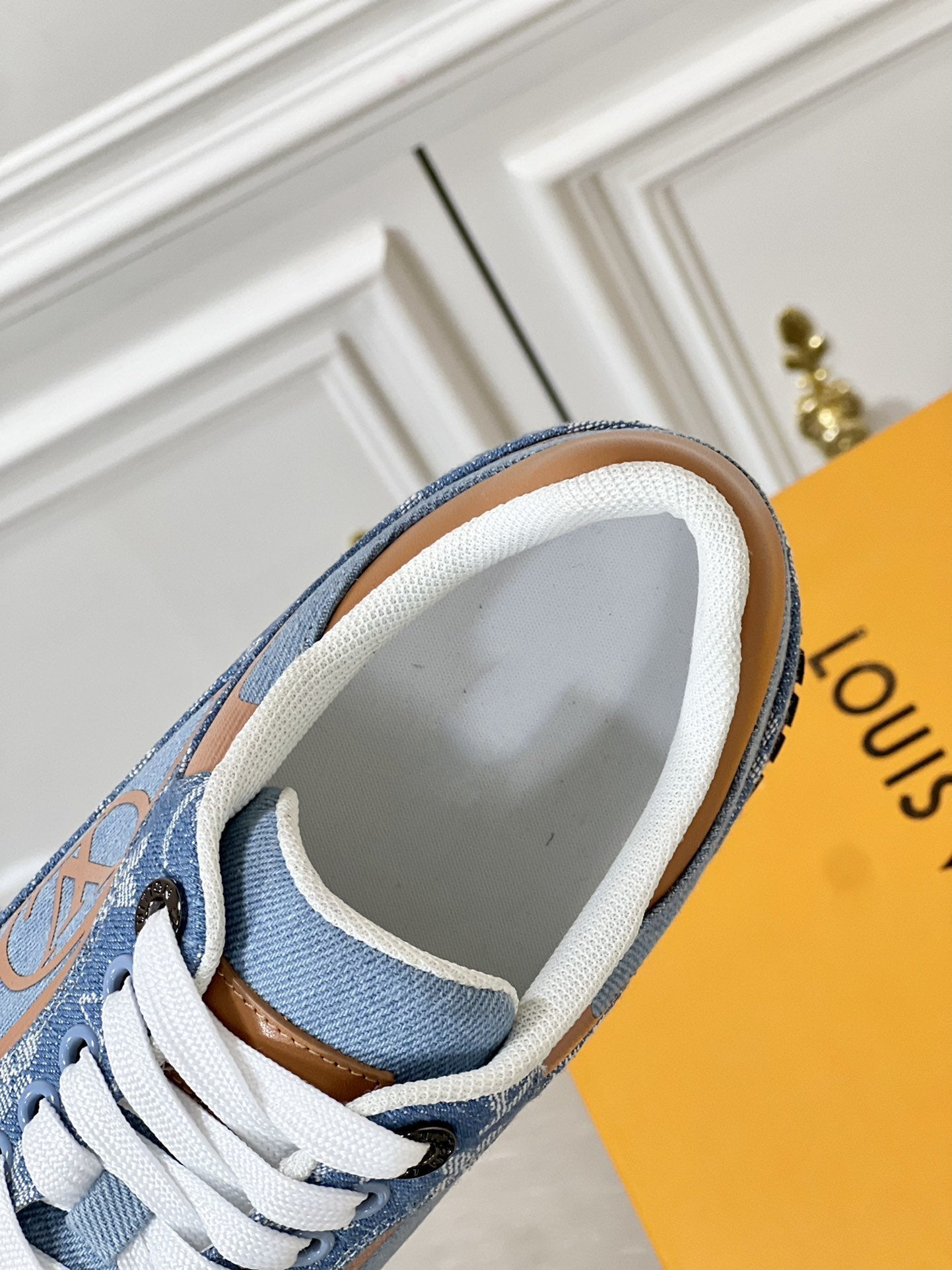 • Upper: "Imported original denim fabric, combined with LV's classic logo."