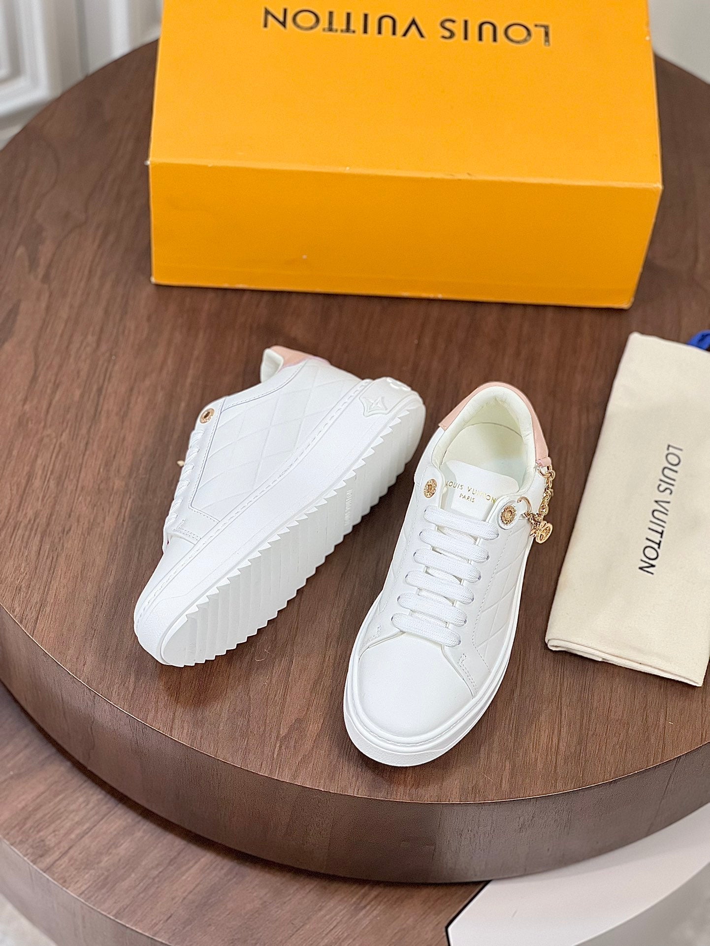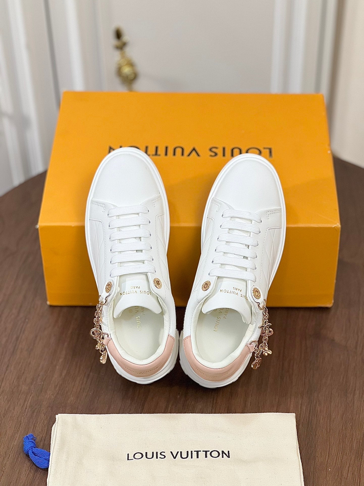 LV TIME OUT SNEAKER WHITE CALFSKIN WITH SIGNATURE CHARMS