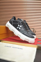 LV TRAINER BLACK CALFSKIN AND DENIM