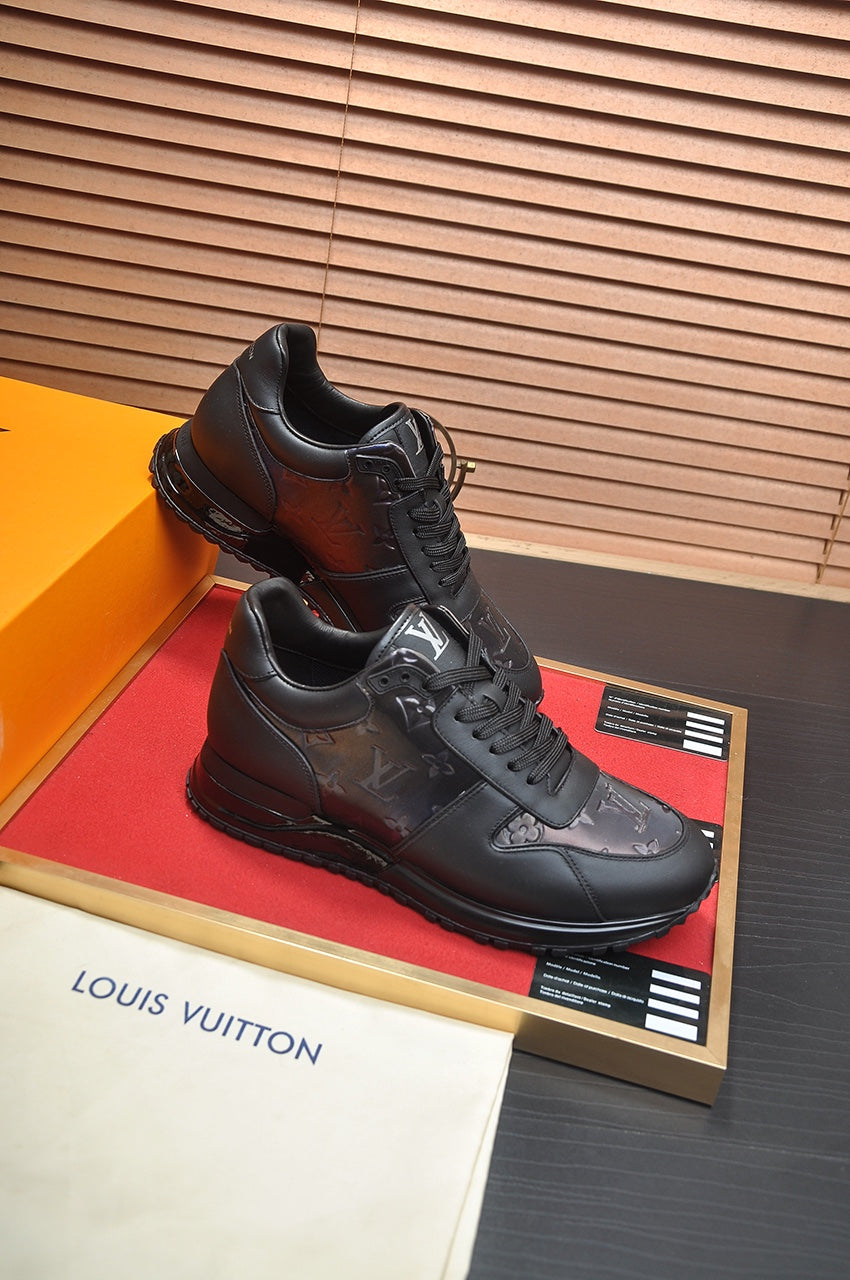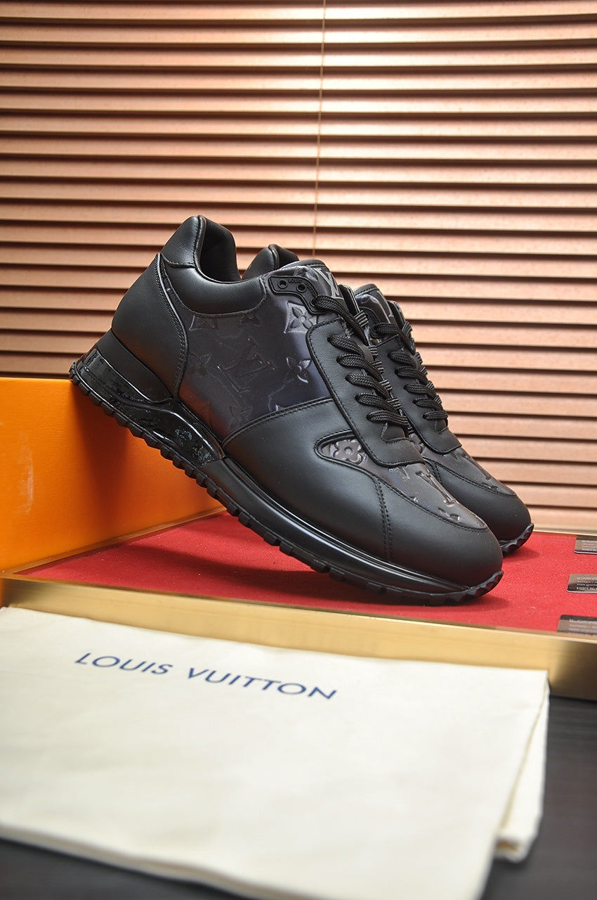 LV TRAINER SHOES IN BLACK EMBOSSED SOFT LAMBSKIN