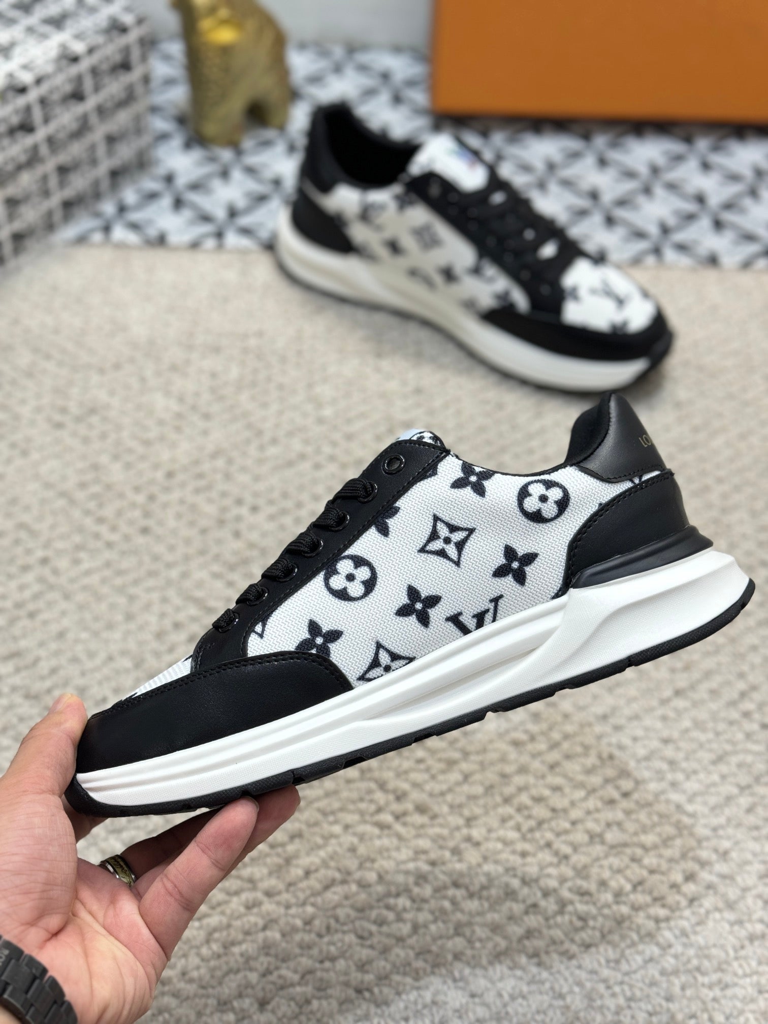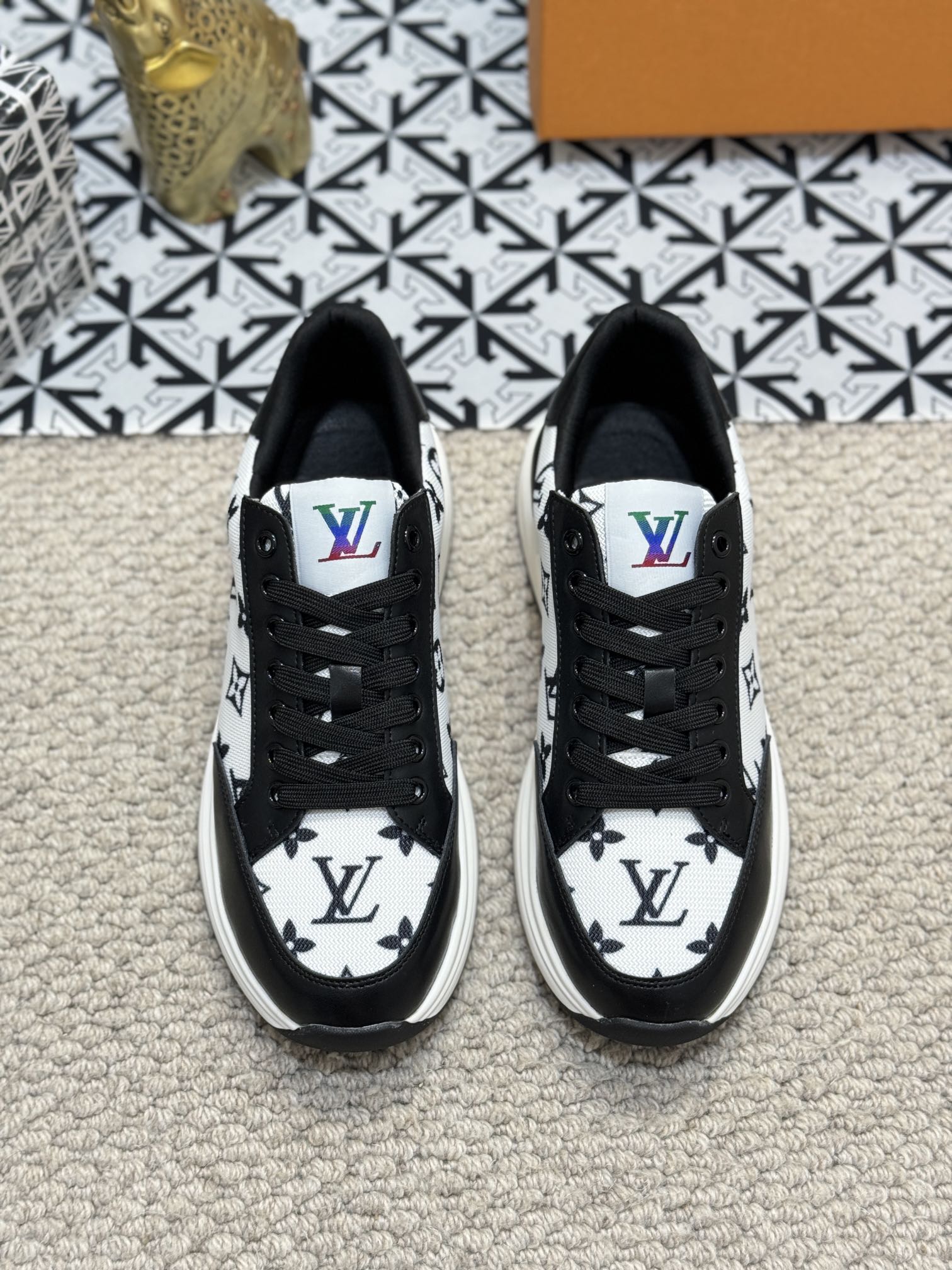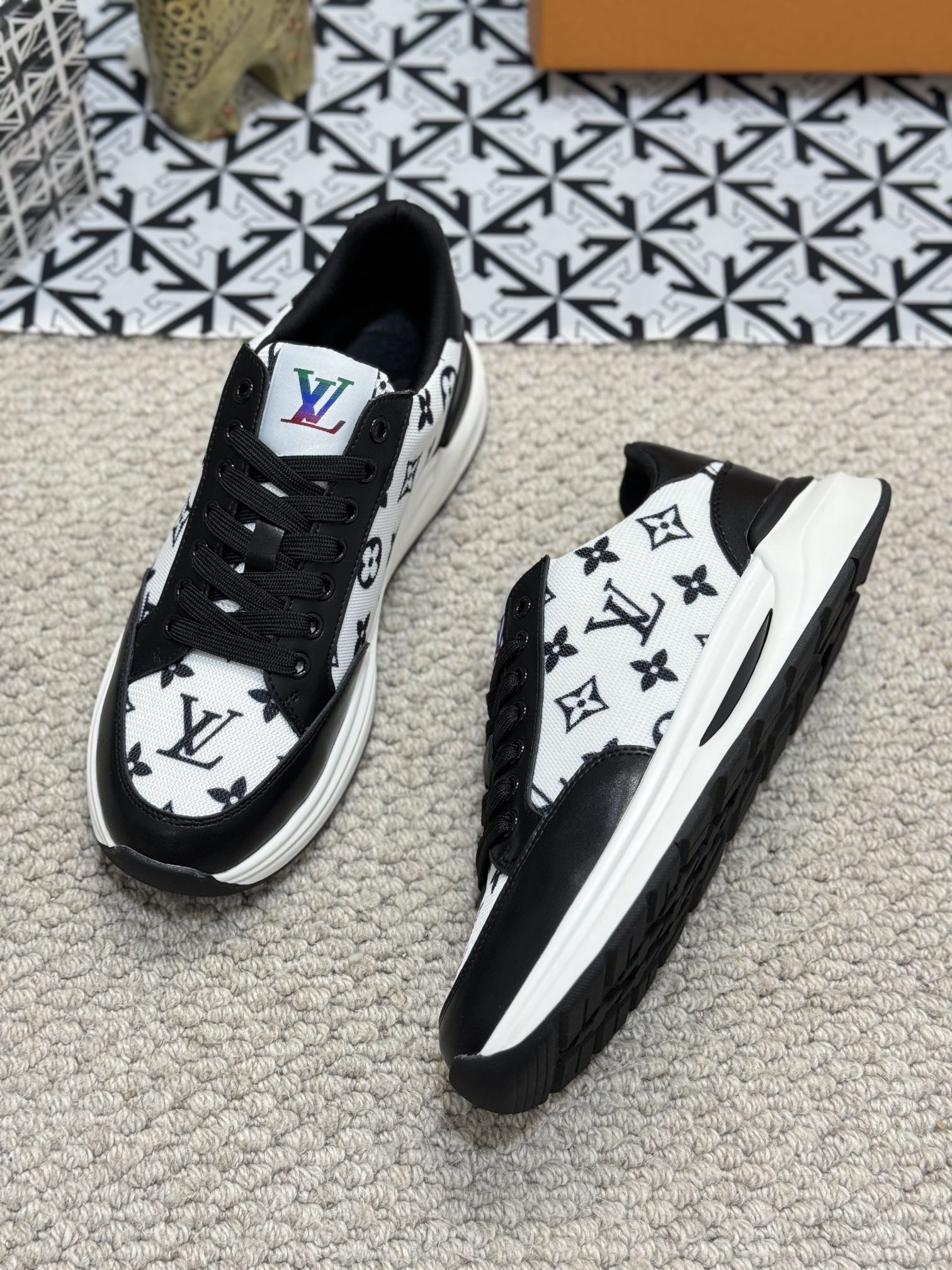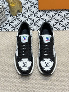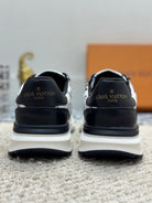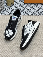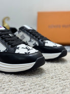 LV TRAINERS IN BLACK CALFSKIN AND WHITE JACQUARD