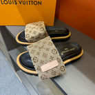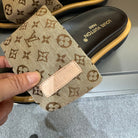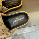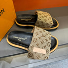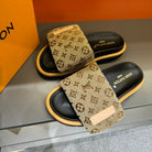 LV VELCRO SLIPPERS IN PEANUT BROWN MONOGRAM JACQUARD