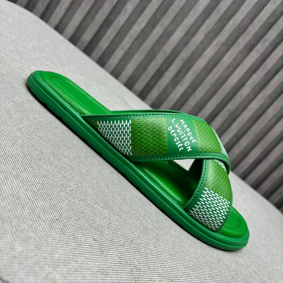 LV VENICE MULE SLIPPERS KELLY GREEN DAMIER
