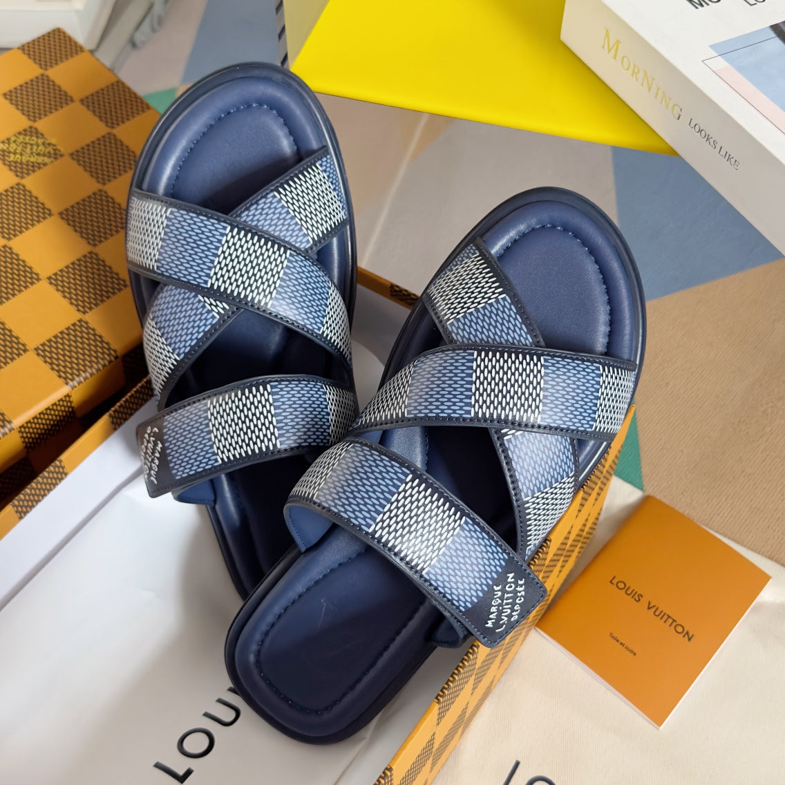 LV VENICE MULE SLIPPERS NAVY BLUE DAMIER