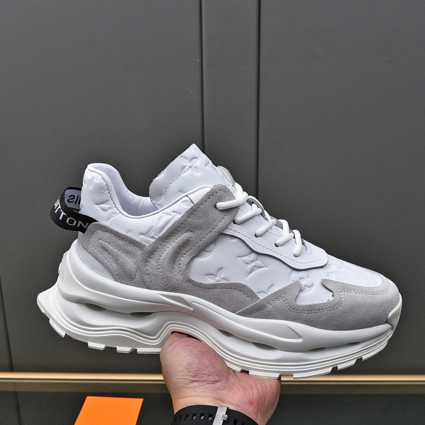 LV MEN'S LUXURY DESIGNER SPORTS SILVER SNEAKERS