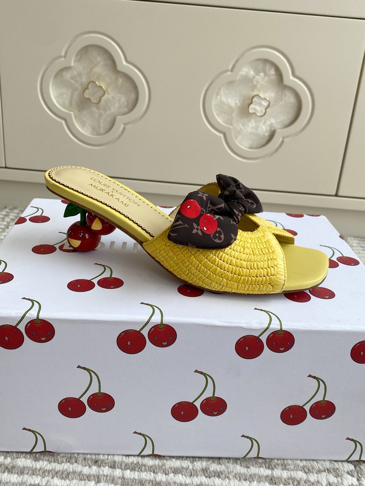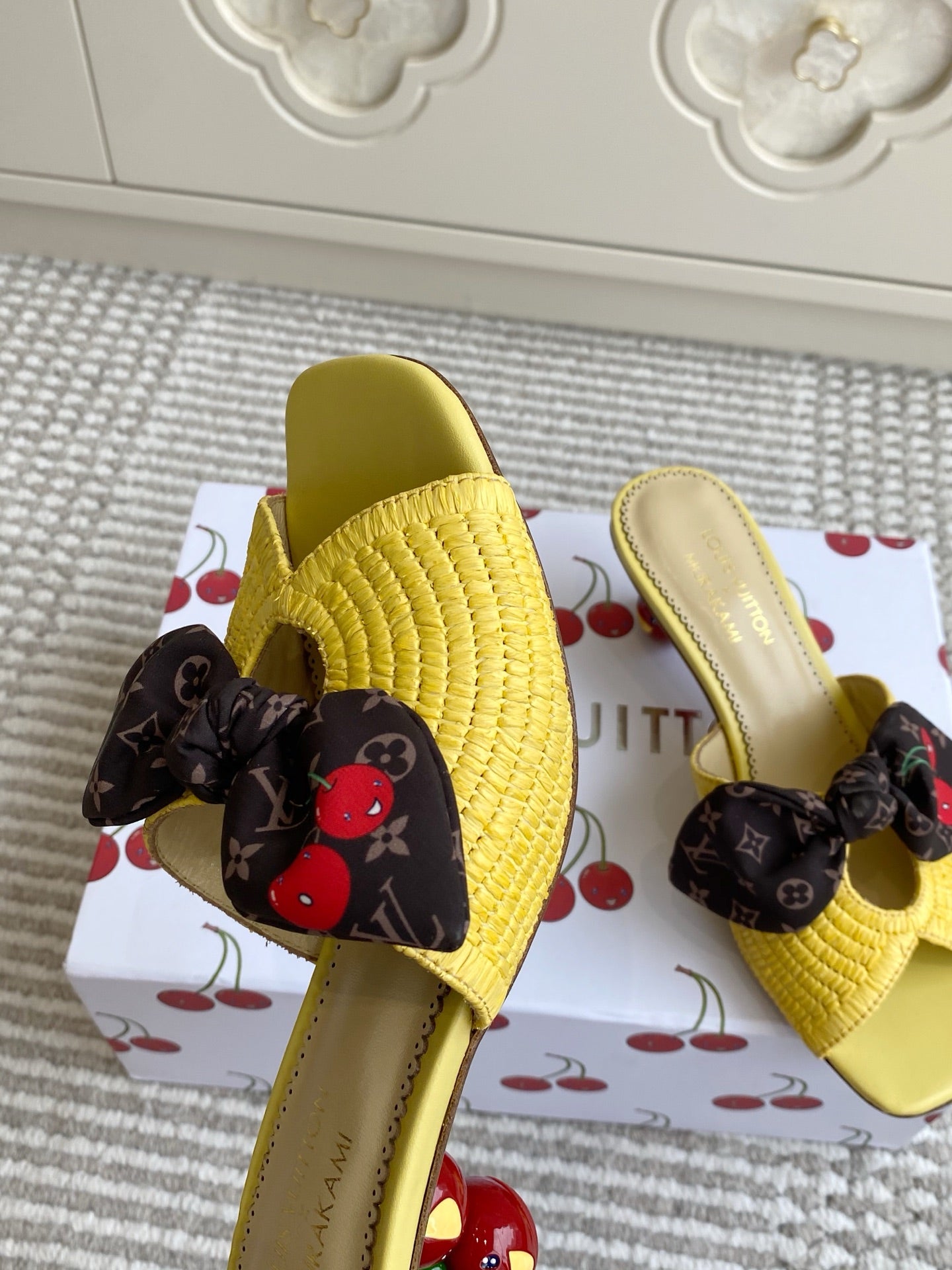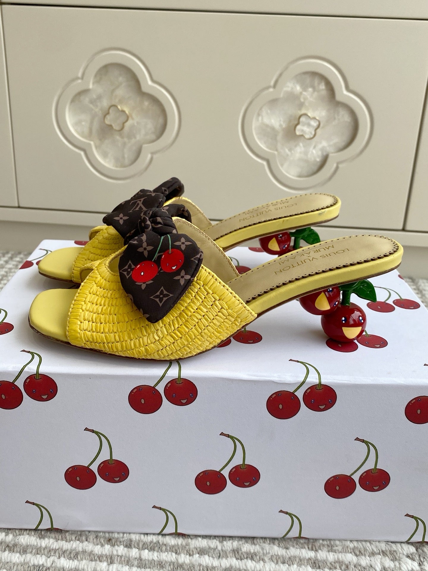 Cherry Series LV X TM CHERIE Sandals Beige Yellow Woven Raffia 442132