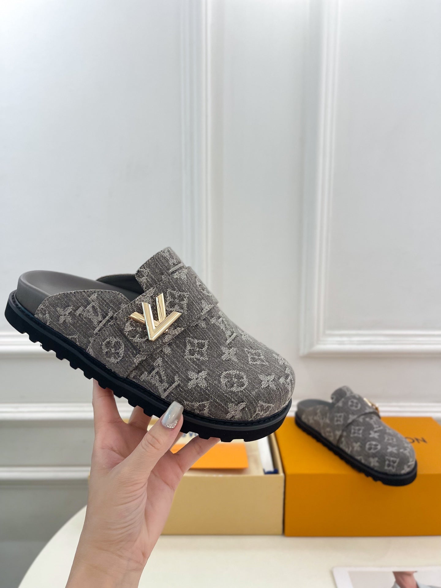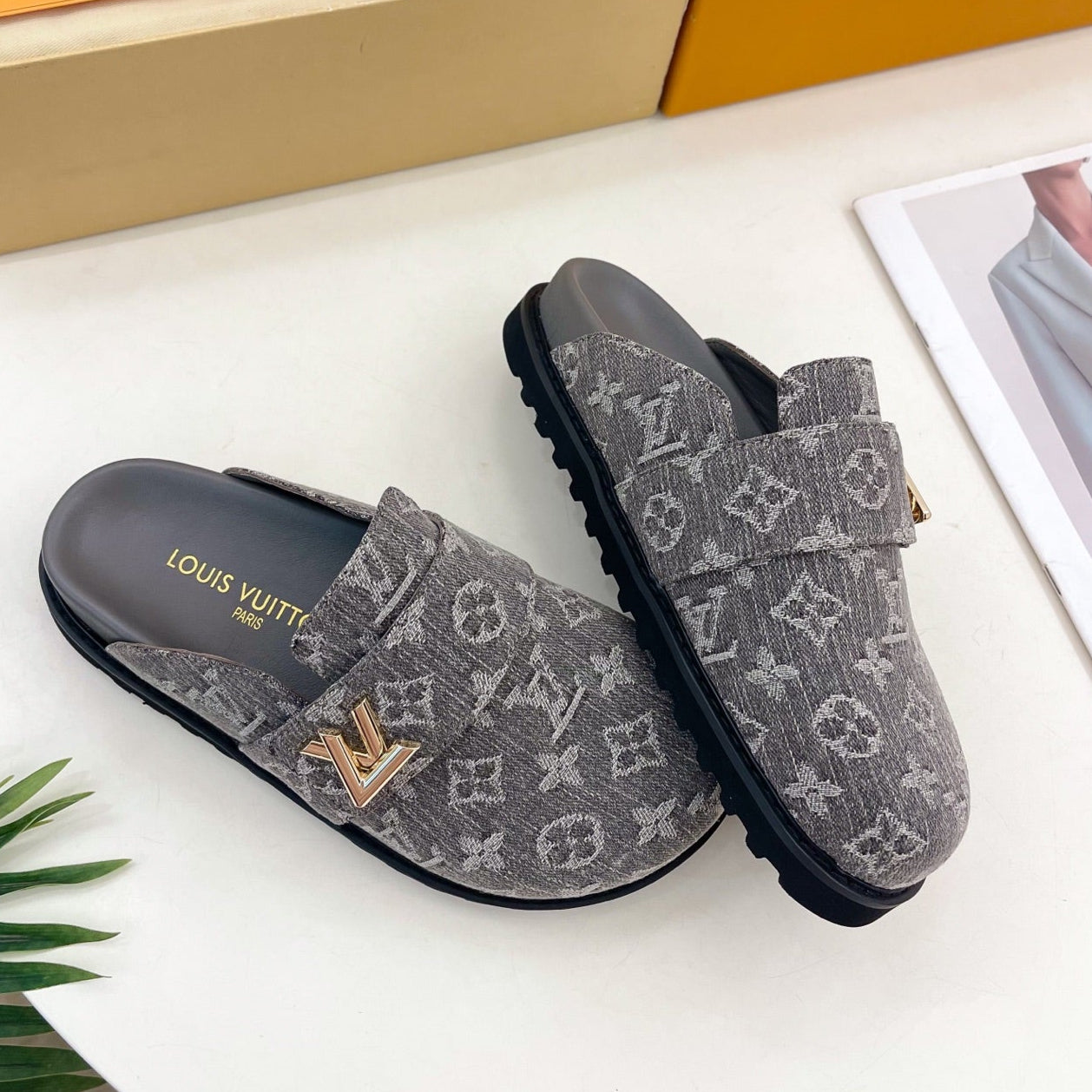 LV 25 Slipper Grey Canvas Cowhide 164659