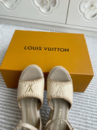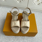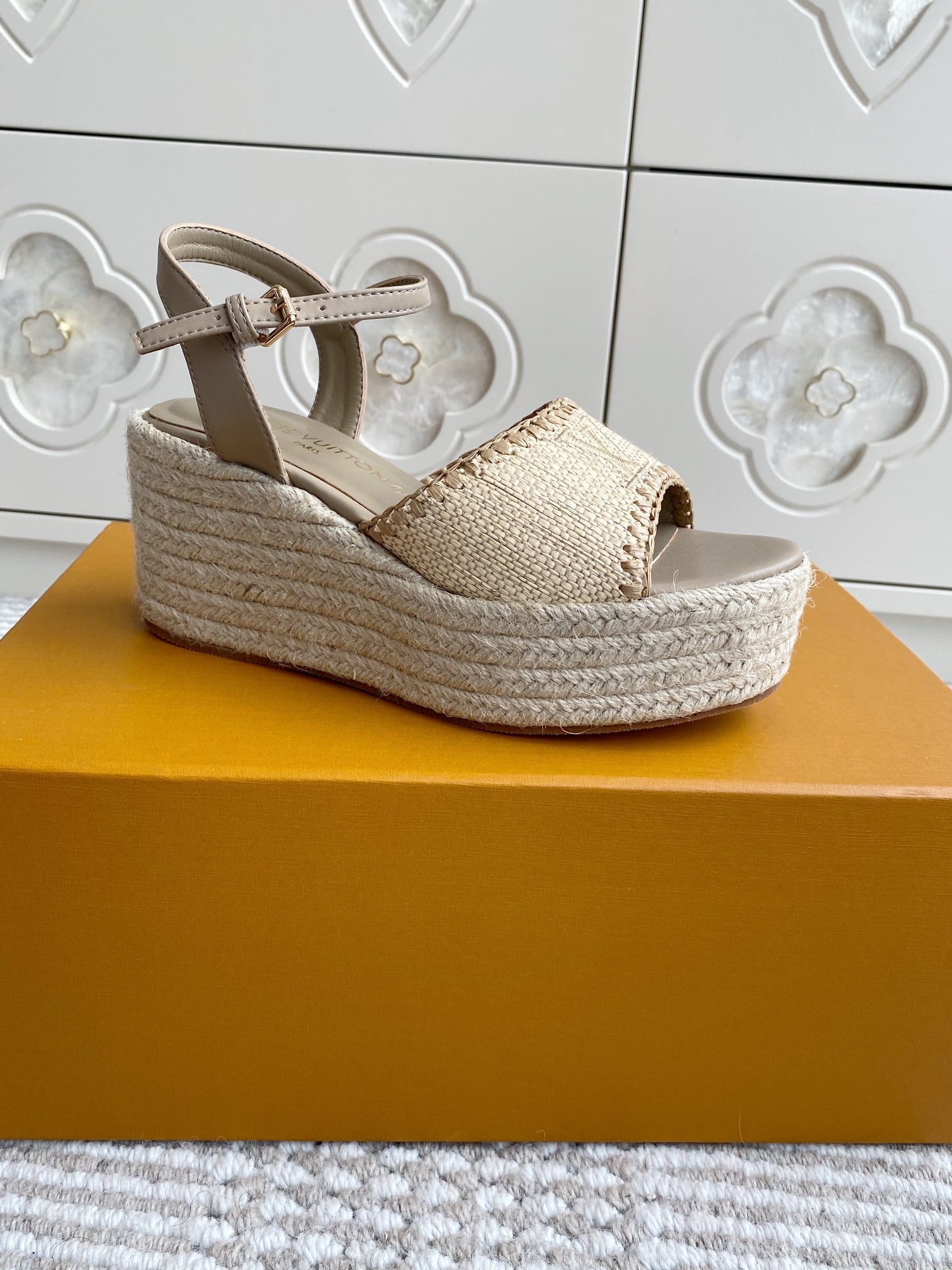 LV Beige·Raffia Straw Wedge Sandals 7.5cm Light Brown Lining Leather 291589