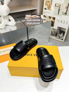 lv bliss flat mule black canvas calfskin