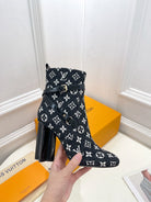 LV Silhouette Ankle Boots 100mm Black Monogram Jacquard Fabric