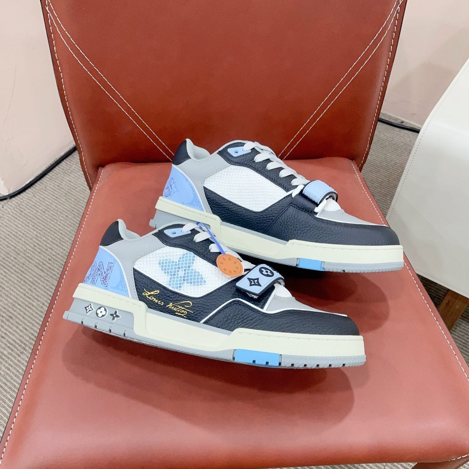 LV Trainer Sneaker Velcro Strap Blue Cowhide