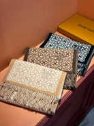 FLOWER MONOGRAM SCARF 180 CM IN TORTILLA BROWN MIX WHITE CASHMERE 388304