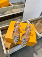 HIGH HEEL 75 MM SLINGBACK IN BRONZE BROWN CALFSKIN WITH CRYSTAL