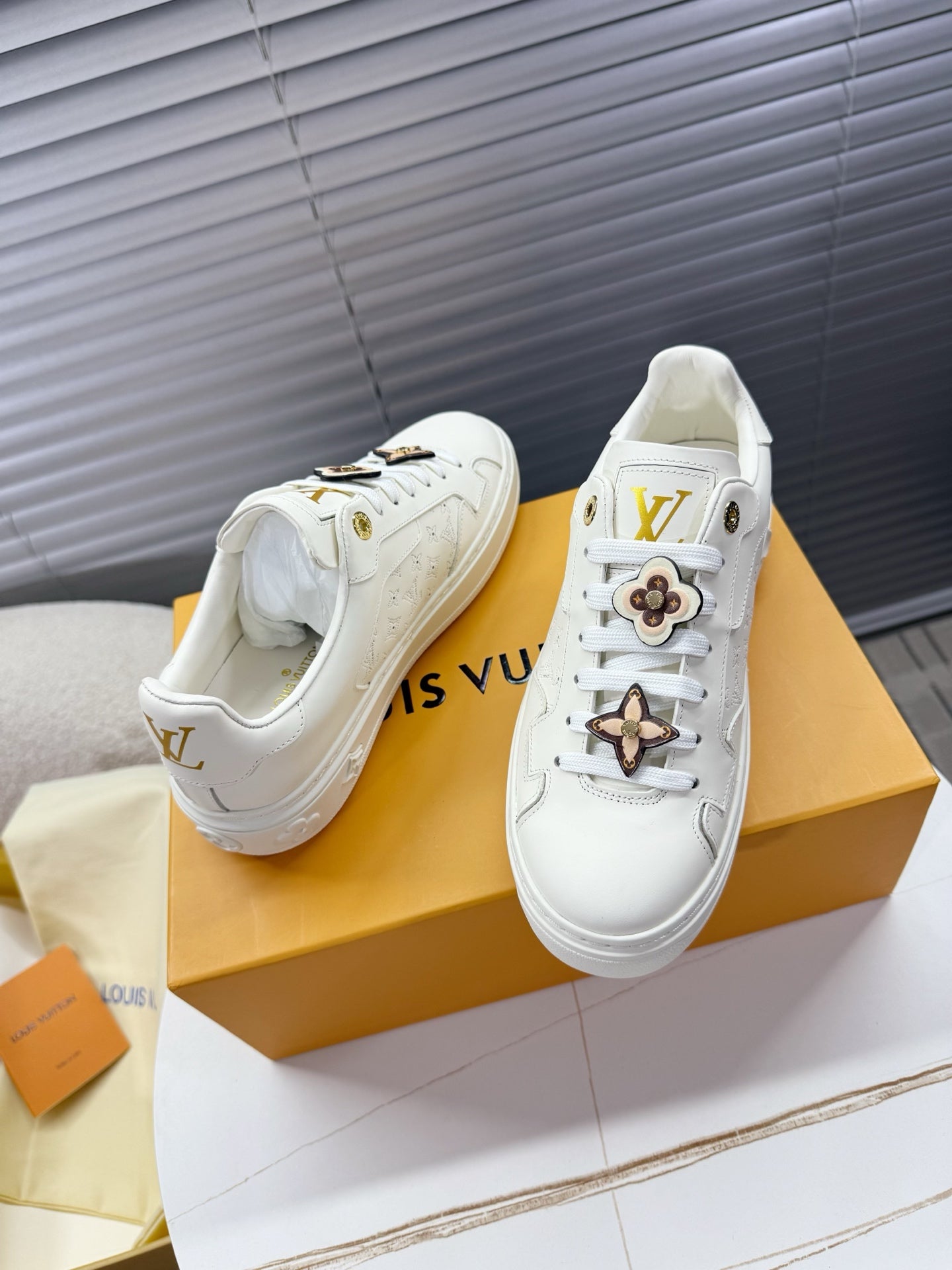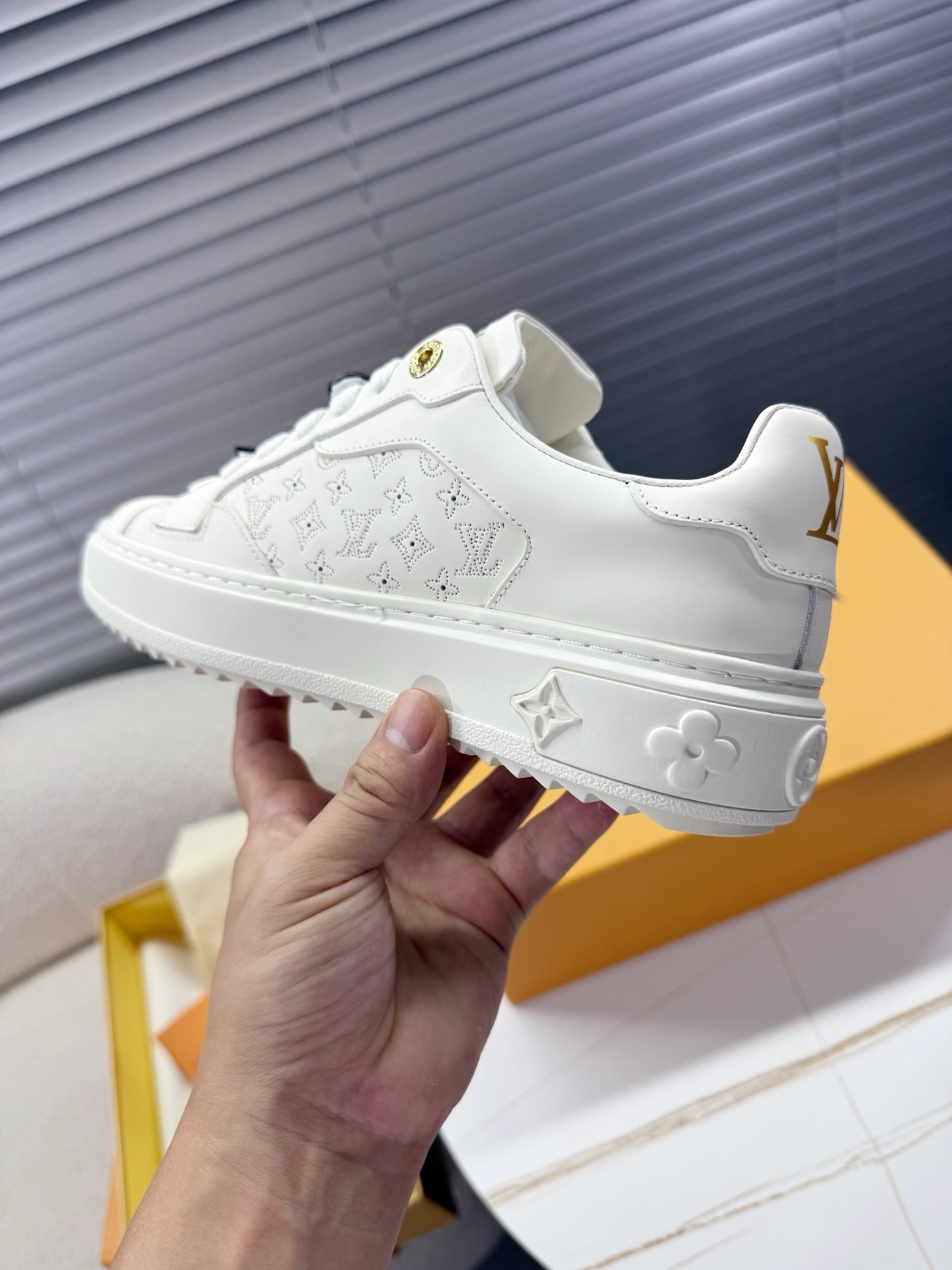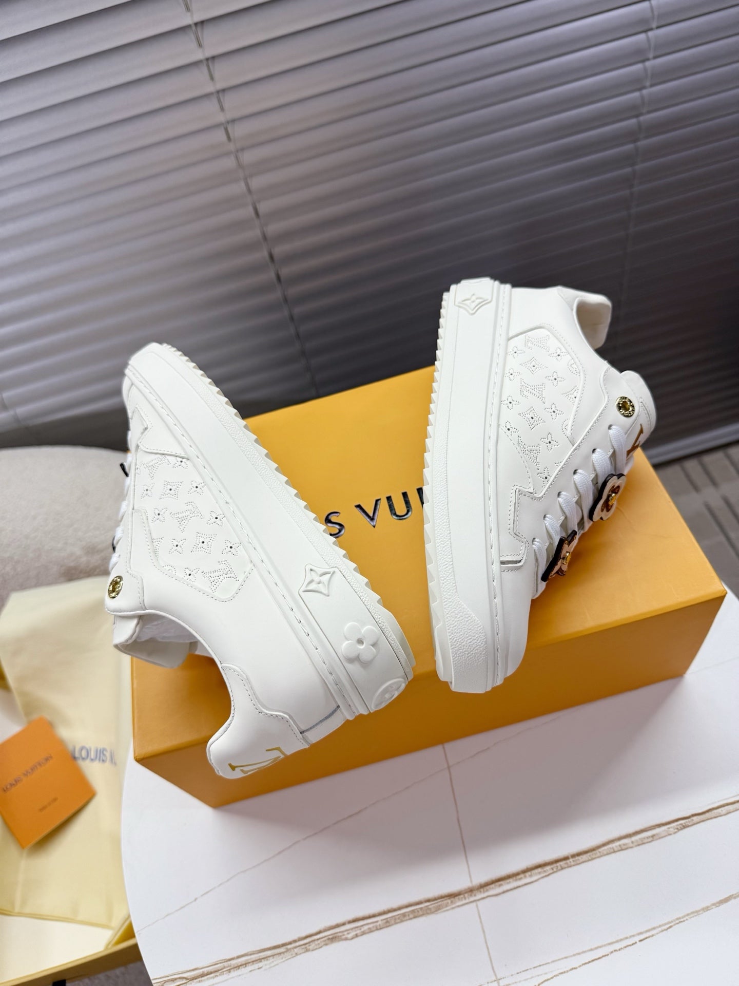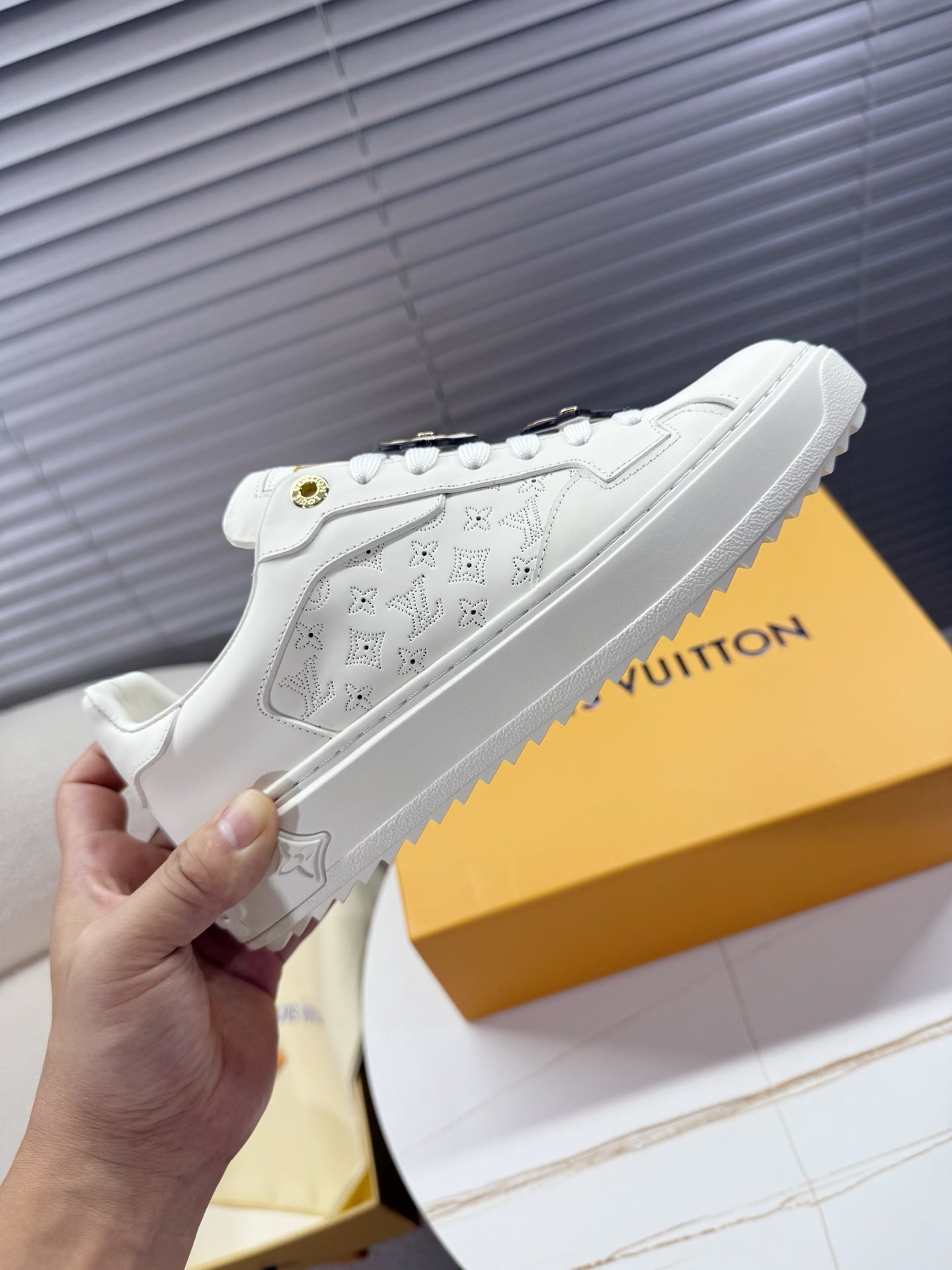 LV 1AICMB Time Out Sneaker White Perforated Mahina Mongram Leather 511747