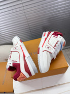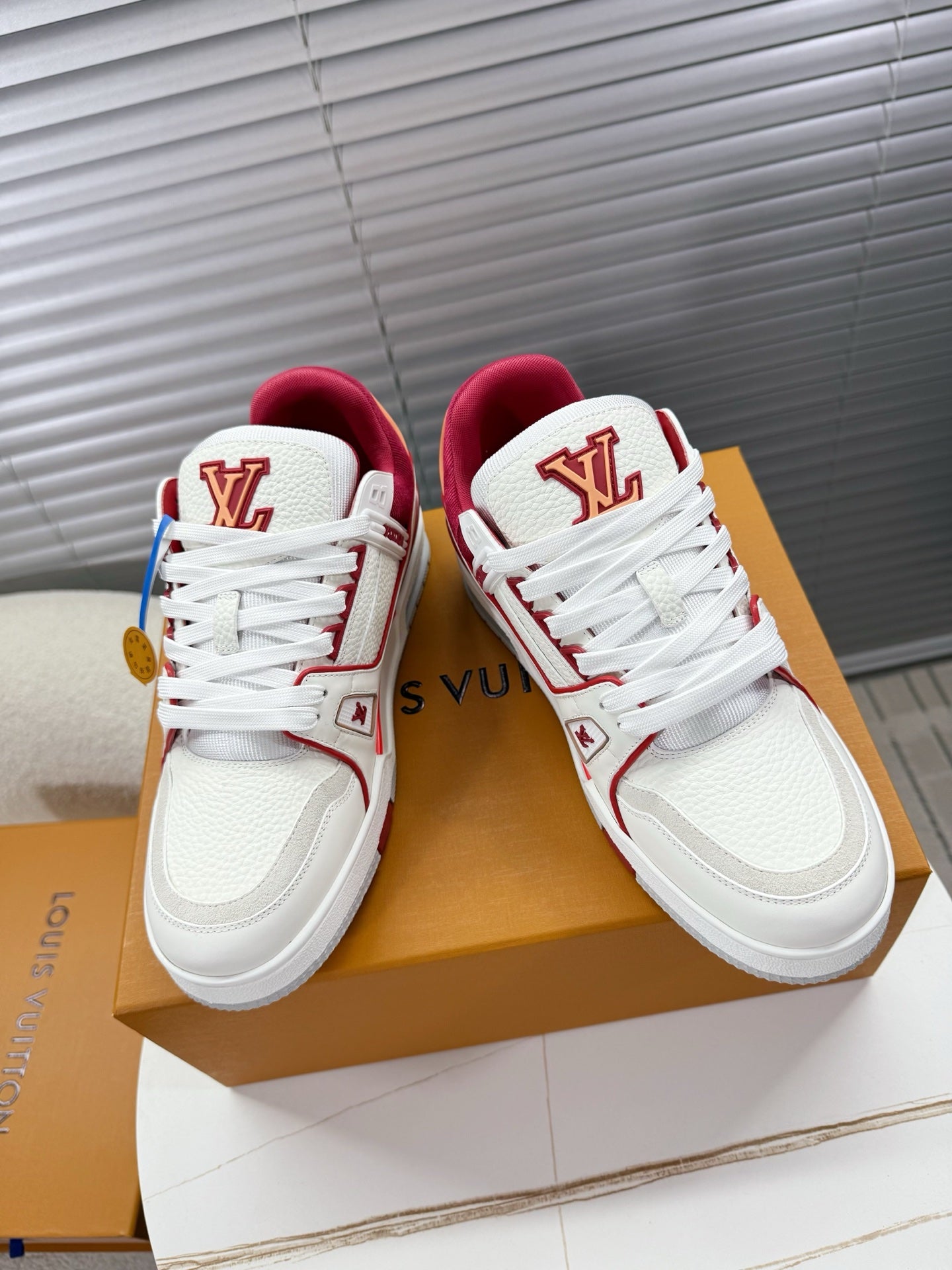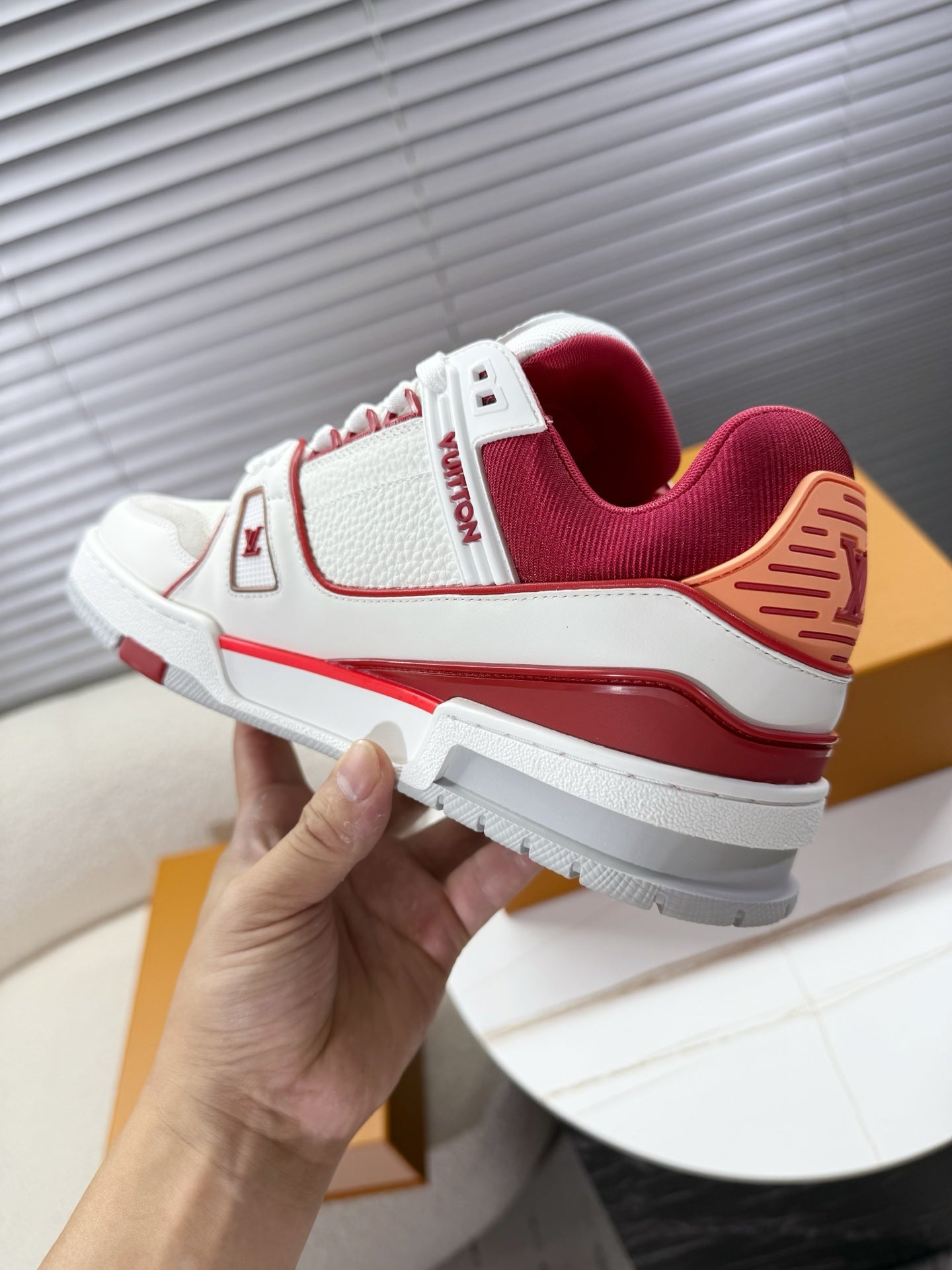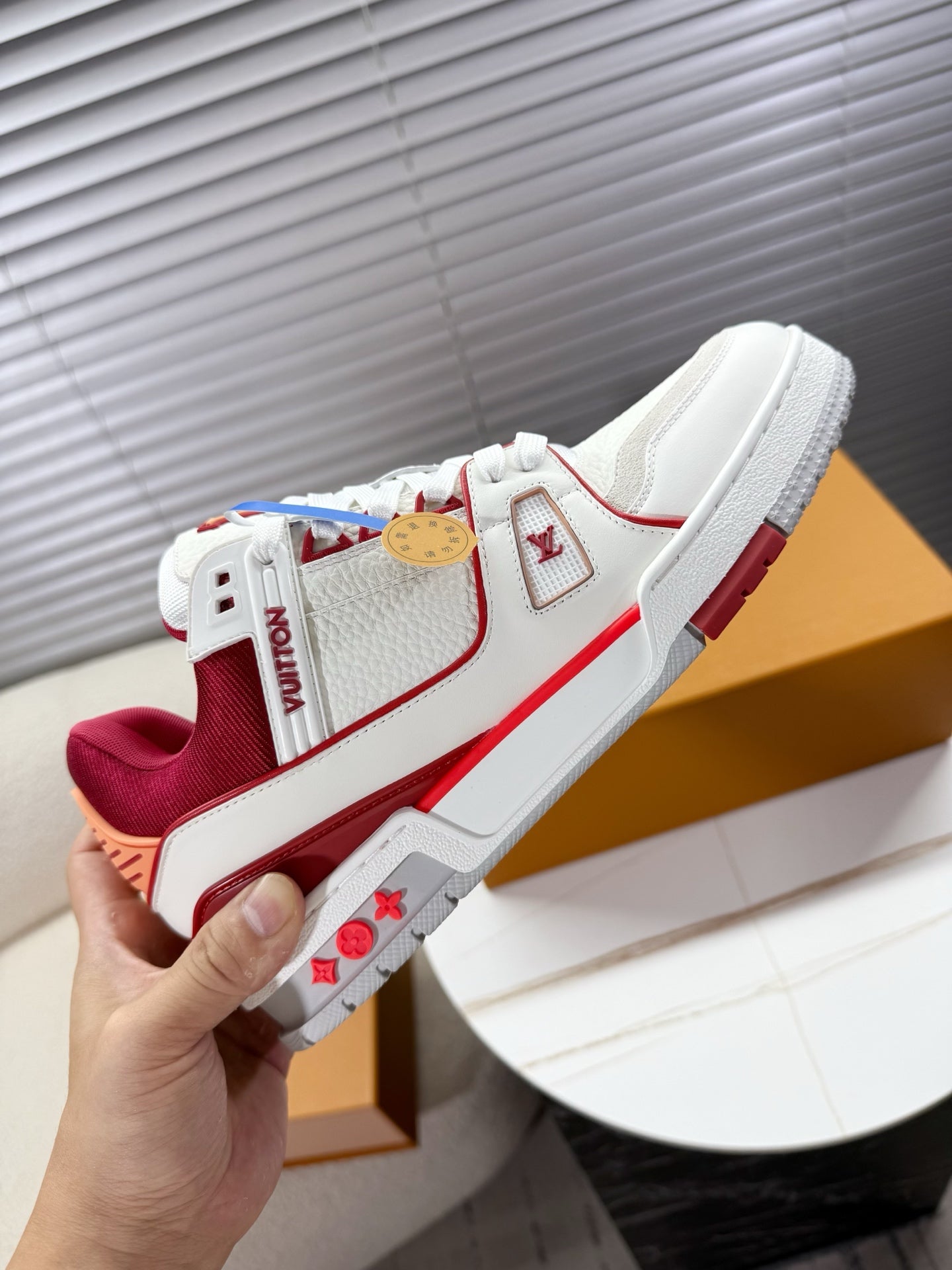 LV 1AIJ41 Trainer Sports Shoes White Red Grained Calfskin 511753