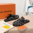 LV 25C Flat Mule Black Monogram Denim Fabric 218314