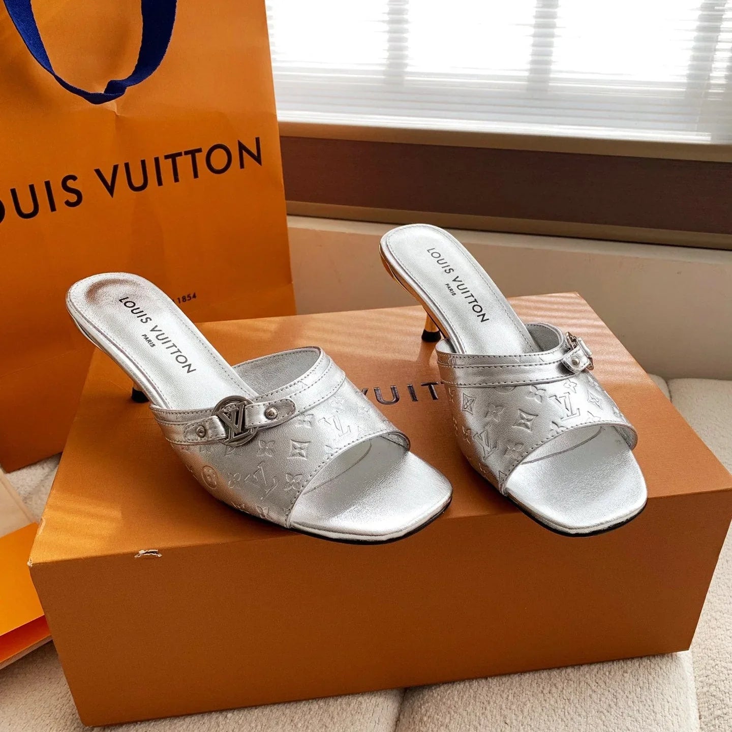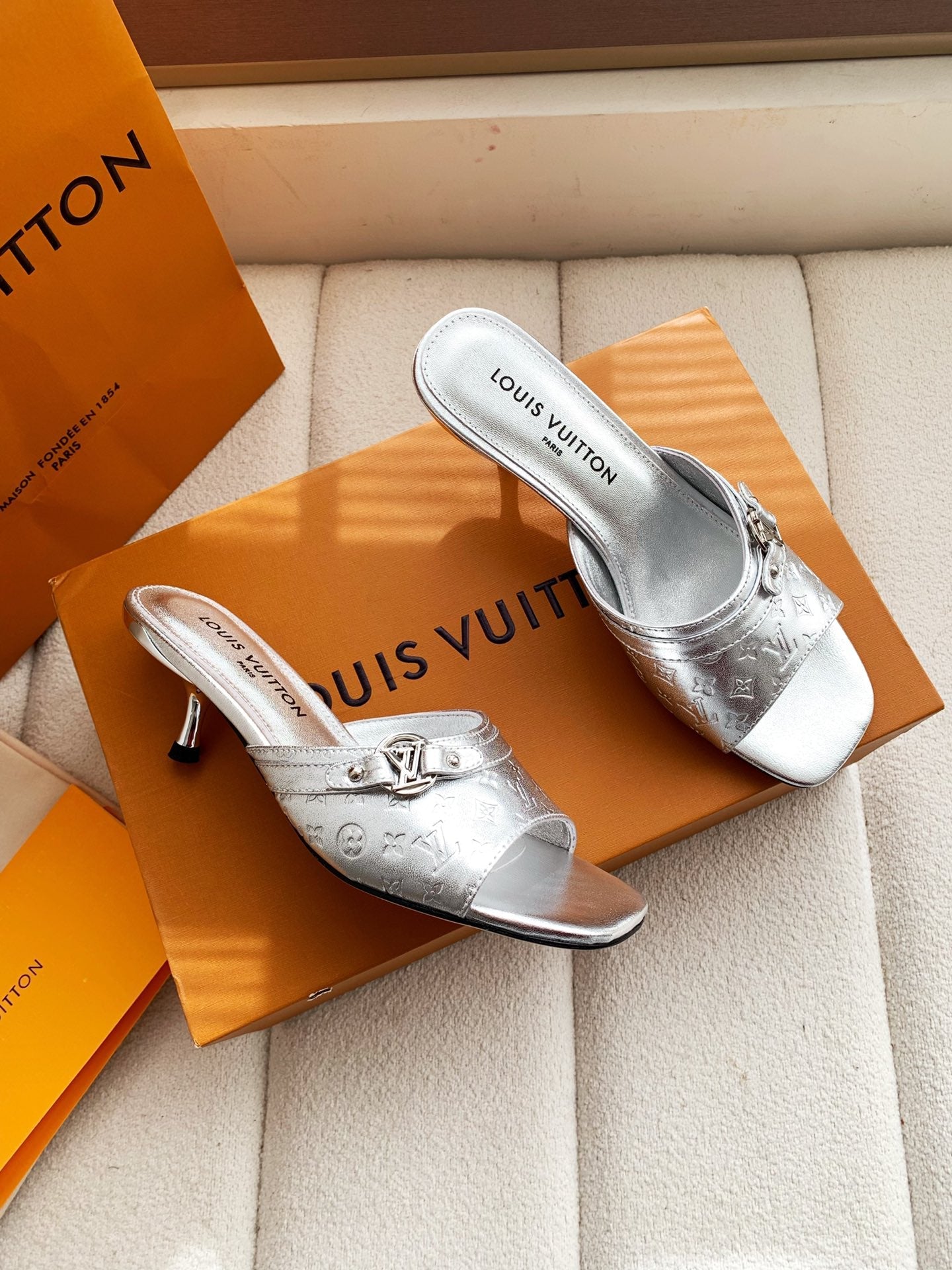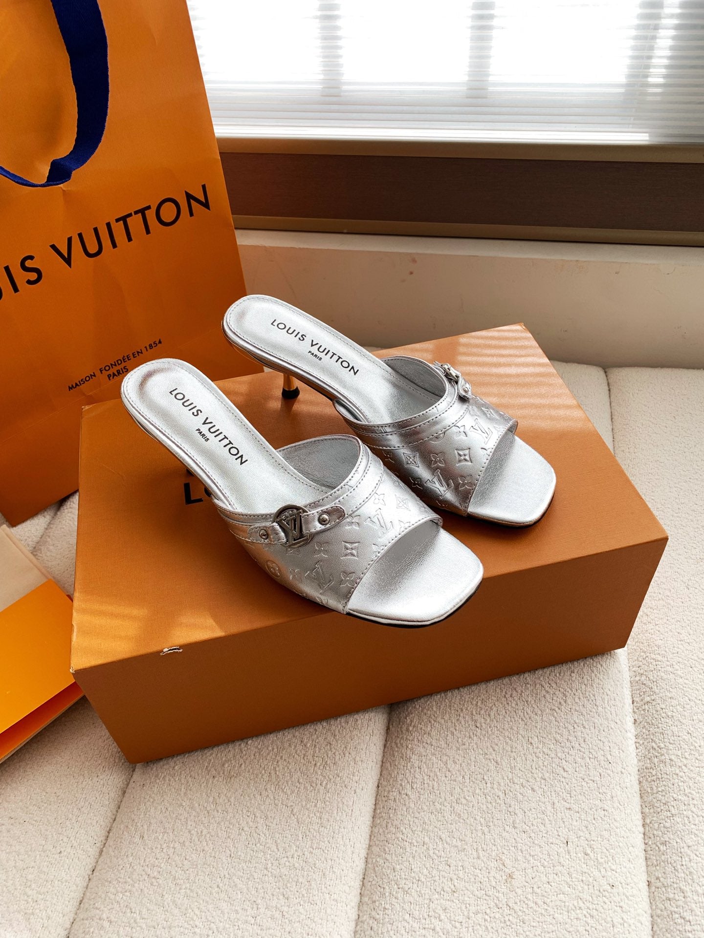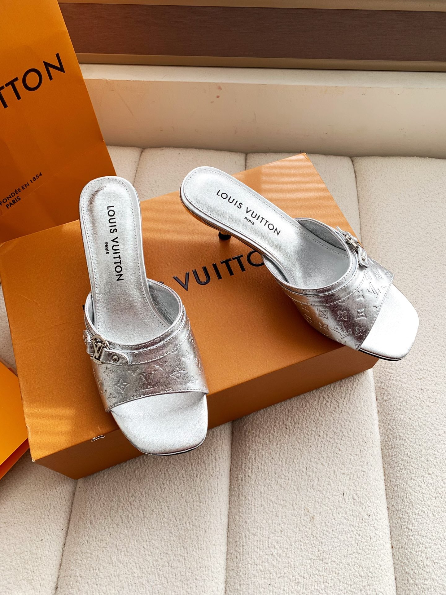 LV 26s High Heels 55 Slippers Sliver Sheepskin 614983